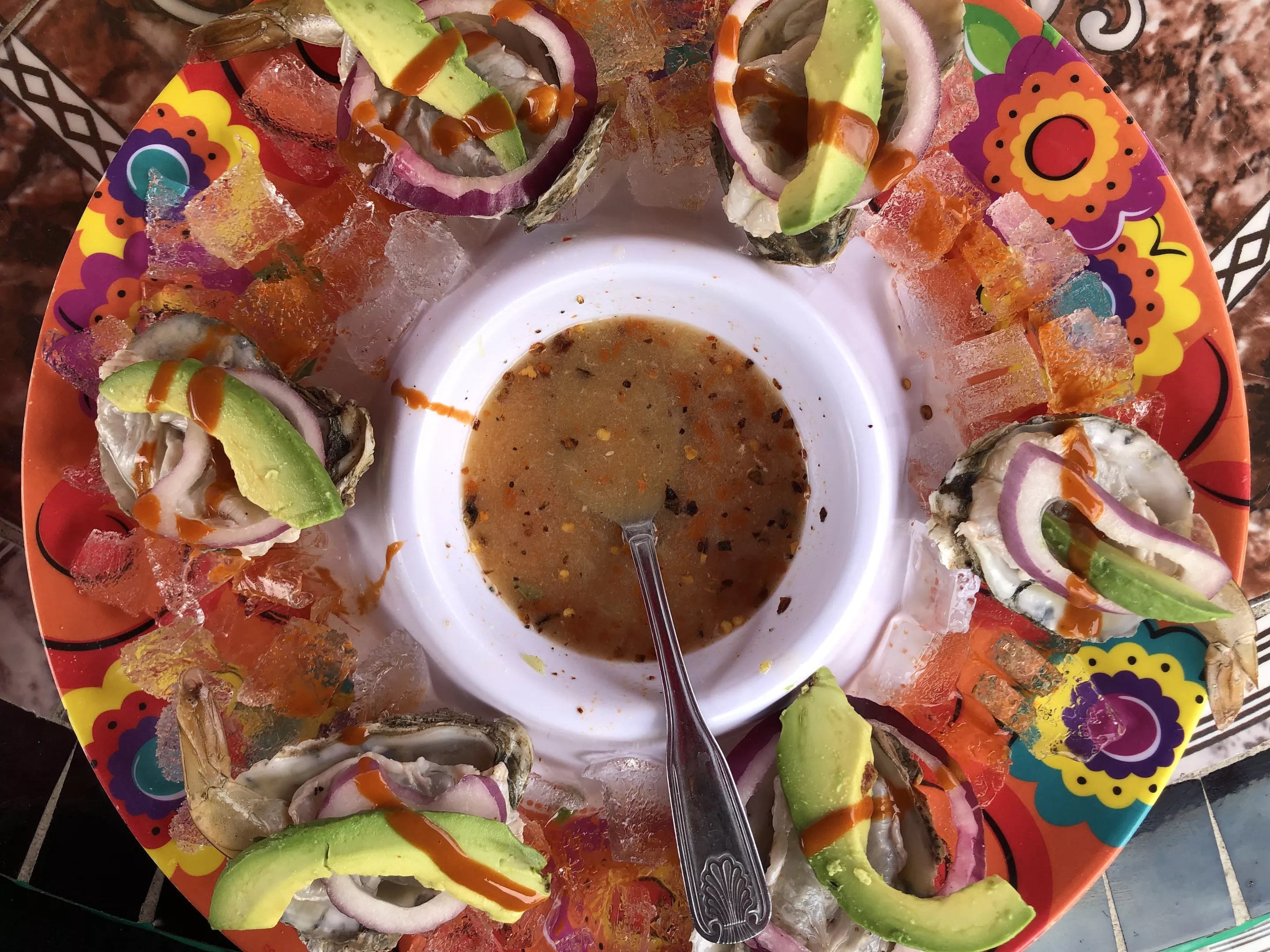 Shrimp and oyster aguachile from Mariscos Playa Hermosa.