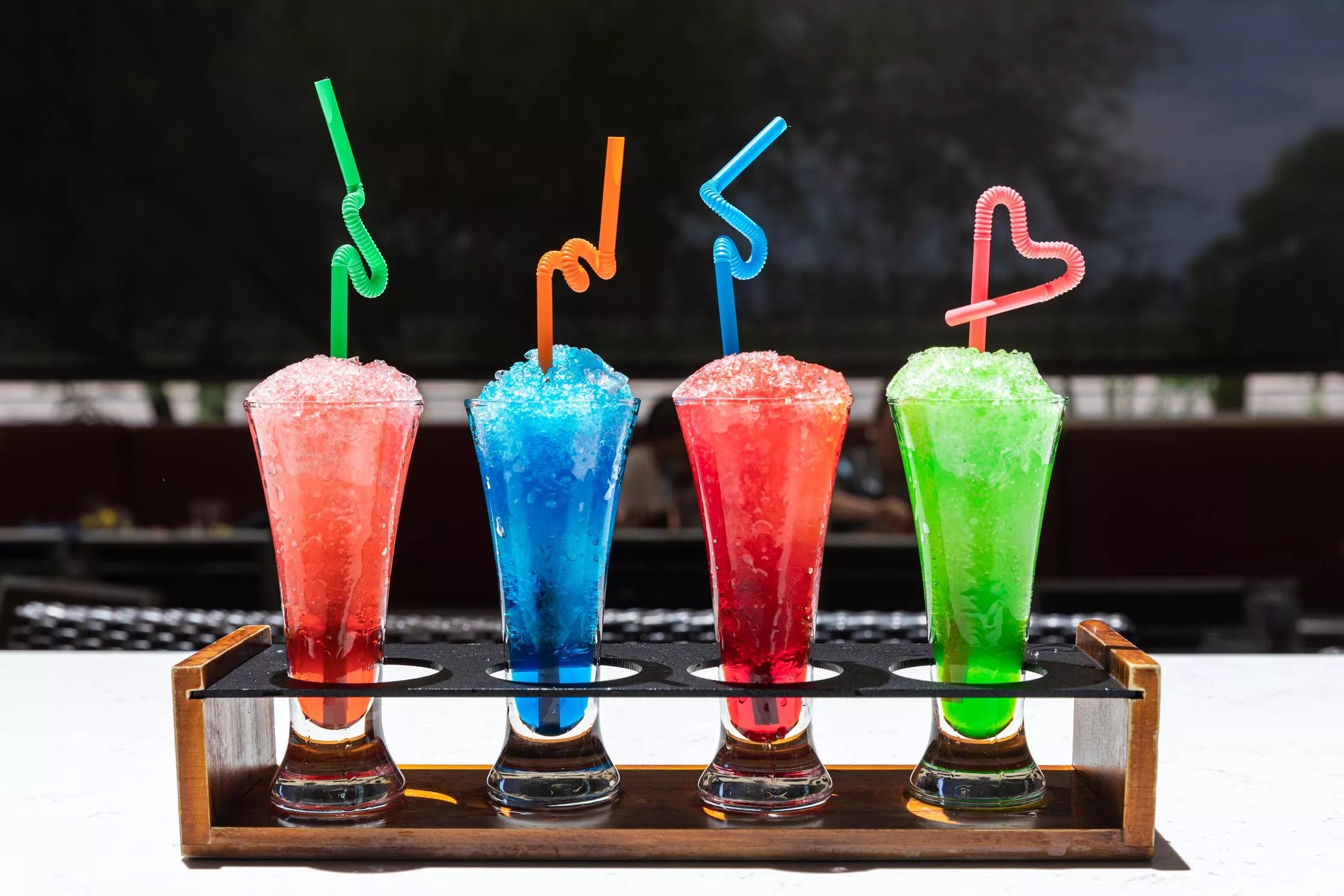 Cool down on Independence Day with Hash Kitchen’s boozy snow cone cocktail flight, which includes flavors like lemon-lime, watermelon, and blue raspberry and cherry limeades. Flights costs $17. Pair your flight with a brunch hotdog which includes two bacon-wrapped hotdogs, crispy golden hash browns, cheddar cheese sauce, a fried egg with jalapeño relish for $16.