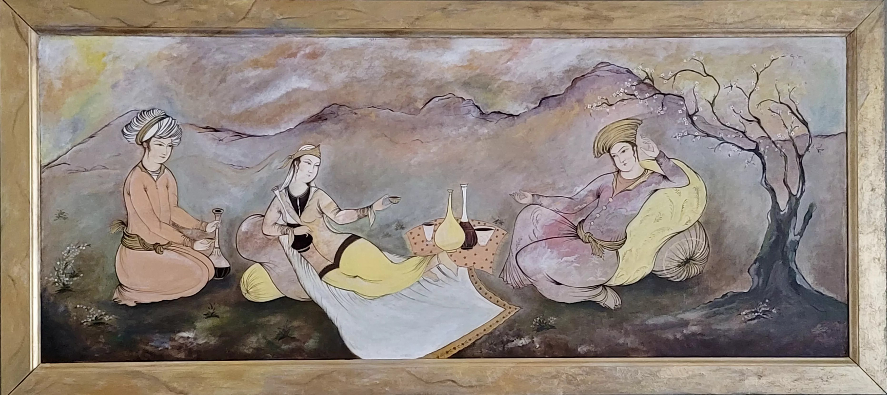 Hosseini has been making Persian pastries for the past eight years, but she also has a degree in calligraphy and fine arts. If you look around her dining room, you’ll see Persian calligraphy, an abstract painting, and a miniature mural (a style, not size, of painting originating in Iran between the 13th and 17th centuries that depicts religious or literary stories). All her works.