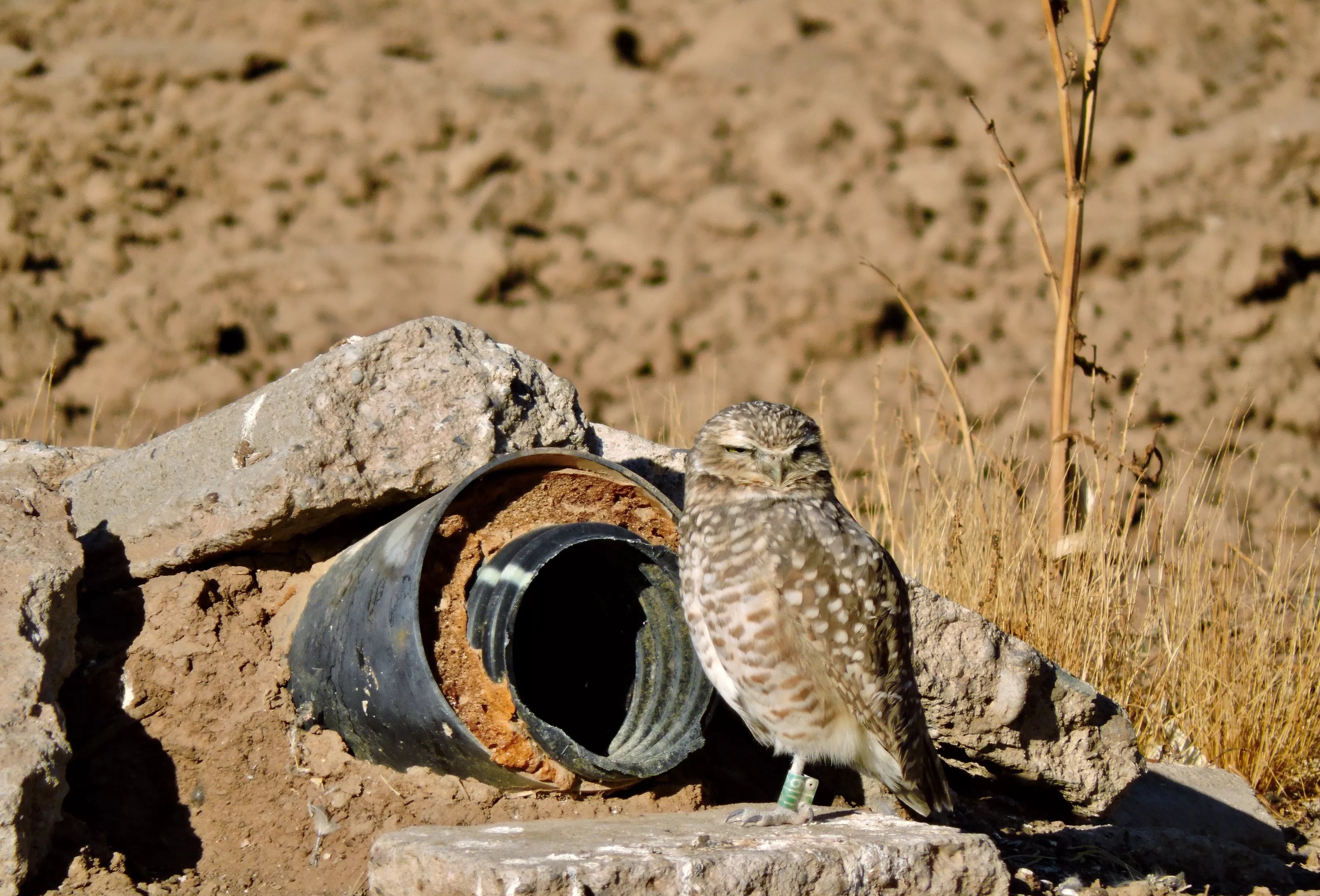 U-9 allowed himself to be caught in Casa Grande and taken to the Wild at Heart wildlife rescue center in Cave Creek. The crew there expected him to injured, but nothing was wrong, and he was released in Maricopa near the University of Arizona Maricopa Agricultural Center. Though free, he’s tagged by a band on his leg with a distinct letter and number combo (U and 9). Later, he mated with an unnamed wild owl. It was she who was being observed by students. But U-9 kept stealing the show.