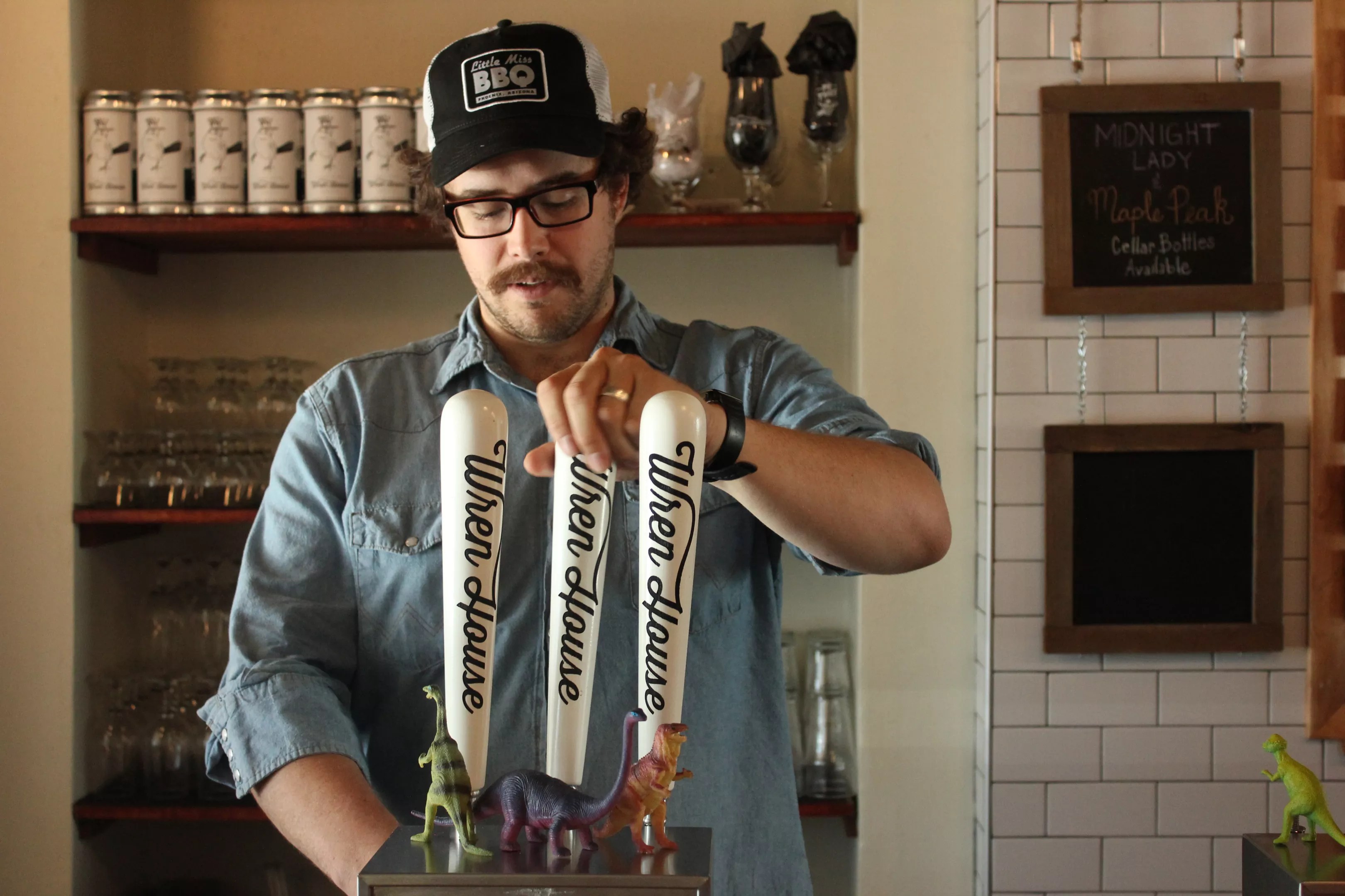Thoeny – tall, mustachioed, a man who measures his thoughts before softly voicing them – is sporting a Little Miss BBQ hat.