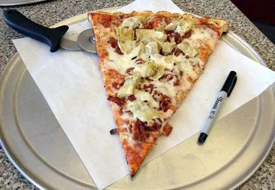 The name says it all at this Mesa strip-mall joint: The slices ($3) are huge, more like whole pizzas shaped like a slice and served with their own pizza cutter. Not gourmet ‘za, by any means, but the crispy seasoned crust and signature sauce are sure to satisfy nonetheless.
