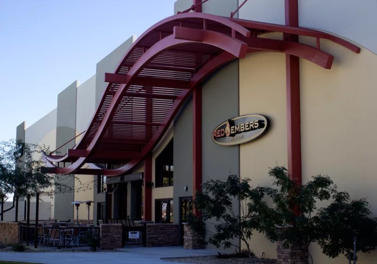 If the yardstick of any sports bar ultimately is the size, quality, and visibility of its screens, then Red Embers is the heavyweight champion of the West Valley. Most everyone else? Mere 90-pound weaklings when compared to this upscale bar and grill inside Surprise’s labyrinthine Uptown Alley entertainment complex (read: bowling alley on steroids). Though not a sports bar in the strictest sense, it rivals any jock joint with its fantastic wings, brew selection, and vast selection of screens, including the monstrous 20-by-15-foot projection HDTV. There aren’t many craned necks or bad seats in the house as the titanic screen is the centerpiece of the Sports Theatre attached to Red Embers and is visible from practically anywhere in the place, as well as most of Uptown Alley (and maybe from Wickenburg). Perched in front are eight overstuffed chairs and a row of benches for up-close viewing. And mere steps away are a huge arcade, a circular lounge with pool and darts, and (of course) 40 bowling lanes. Kinda puts your neighborhood game-day hangout to shame, bro.