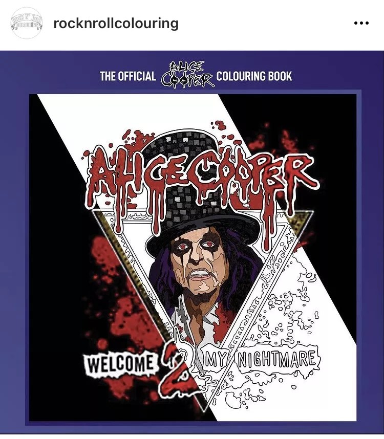 Rock N Roll Colouring, a U.K. outfit that puts out officially endorsed books by bands like Judas Priest and Motorhead, will release The Official Alice Cooper Colouring Book on August 27.