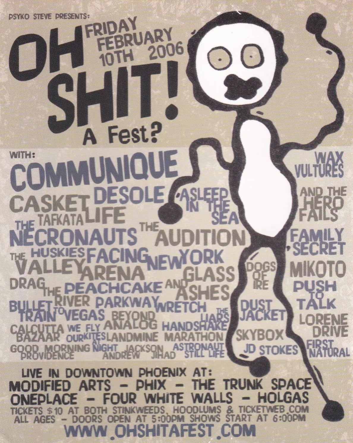 First up, the Arizona Music Scene Archive was started by Javier Martinez and his wife, Anne Lasswell, at the end of 2024. The first post is a flyer for the Oh Shit! A Fest, a show that took place in downtown Phoenix on February 10, 2006. The lineup is a who’s who of the local scene almost twenty years ago and even features bands like Landmine Marathon and Andrew Jackson Jihad in tiny print at the bottom of the flyer.Mauez and Lasswell started the page to share the images with friends, and over the past six months, they have added over 1,000 posts featuring flyers and photos from hundreds of shows.