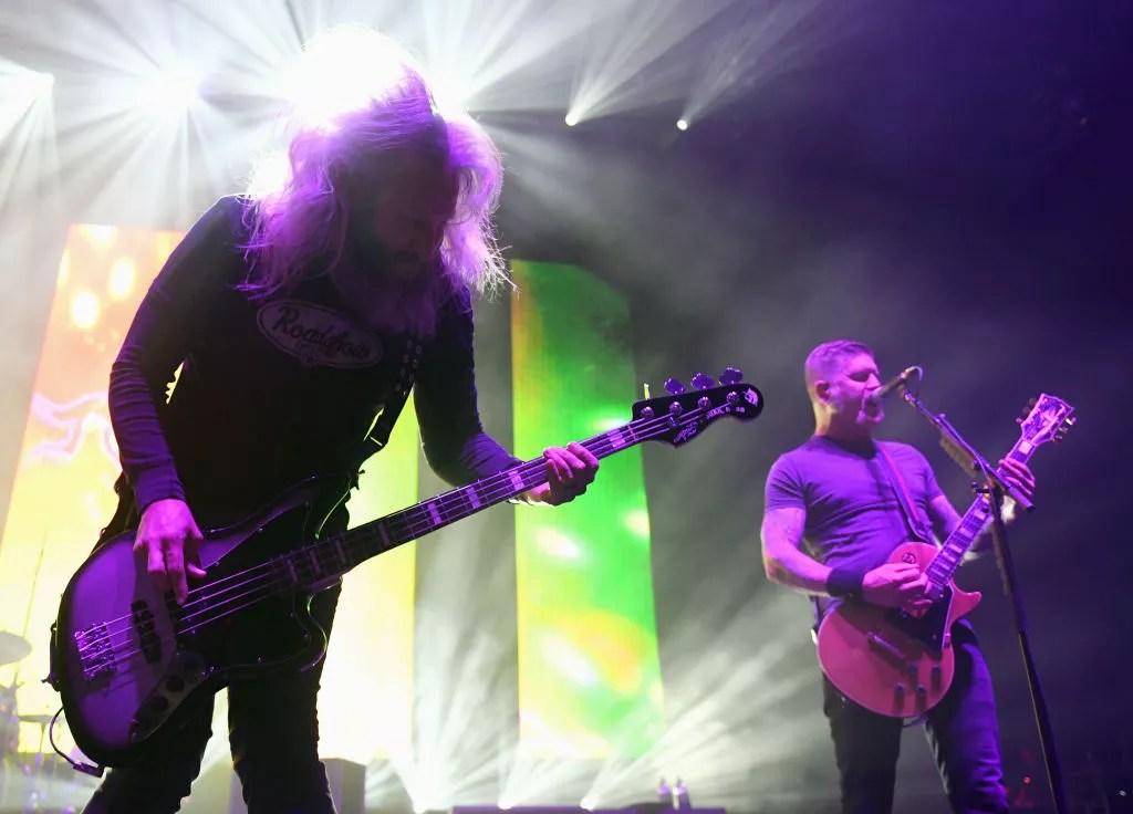 Singer/bassist Troy Sanders (L) and guitarist Bill Kelliher of Mastodon perform at The Joint inside the Hard Rock Hotel & Casino on June 28, 2019, in Las Vegas, Nevada.