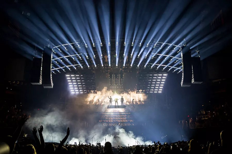 The Jonas Brothers make their grand entrance at Talking Stick Resort Arena.