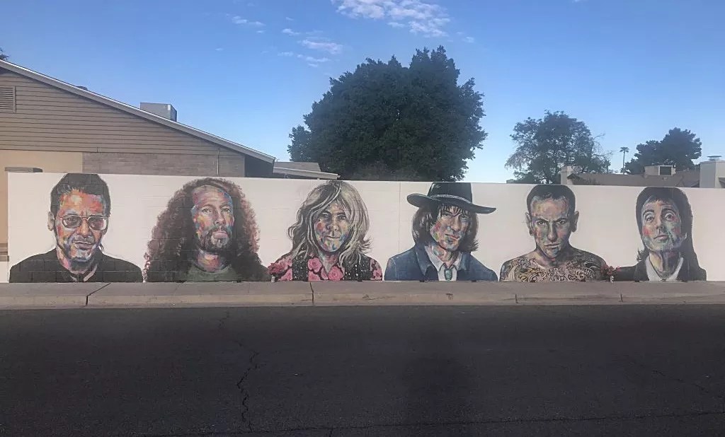 Doug Hopkins may have shuffled off his mortal coil some 28 years ago, but he’s still a part of the city where he made his name as a musician. A vibrant, 8-foot-wide painting of the late Gin Blossoms songwriter and guitarist adorns the cinderblock wall outside Tommy Gwinn’s home in Tempe and is part of the Valley Rockstar Memorial, a mural series he launched in 2020 to honor prominent local musicians who have died. Alongside Hopkins are portraits of guitarist-vocalist Lawrence Zubia, Linkin Park frontman Chester Bennington, keyboardist Vince Welnick of The Tubes, and Mike Condello, the bandleader for The Wallace and Ladmo Show. There are seven paintings in all, each created by Mesa artist Gina Ribaudo. As Gwinn told us earlier this year, the project is a way to keep the memories of these local legends alive. “Someone told me once that everybody dies twice: The first time is when they pass away and the second is when everybody forgets who they were,” he says. “And I’m trying to help keep the second one from happening as much as possible.” Amen, brother.