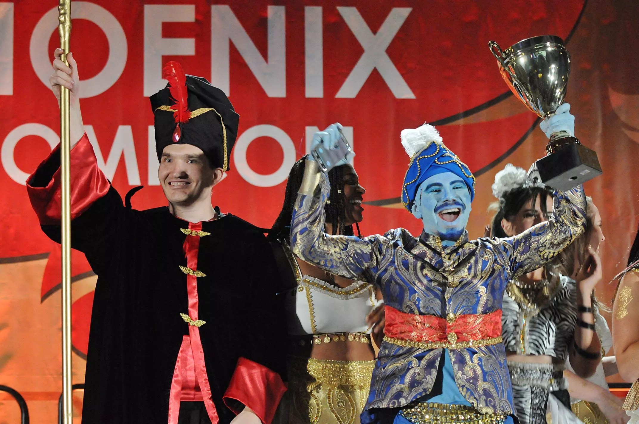 Cosplayers celebrate winning the Best in Show award at Phoenix Comicon’s Masquerade this year.