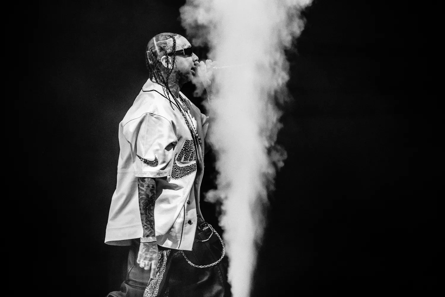 Tyga gets smoky at Lil Wayne’s Tha Carter VI Tour Celebrating 20+ years of Carter Classics, at Talking Stick Resort Amphitheatre Aug. 29, 2025.