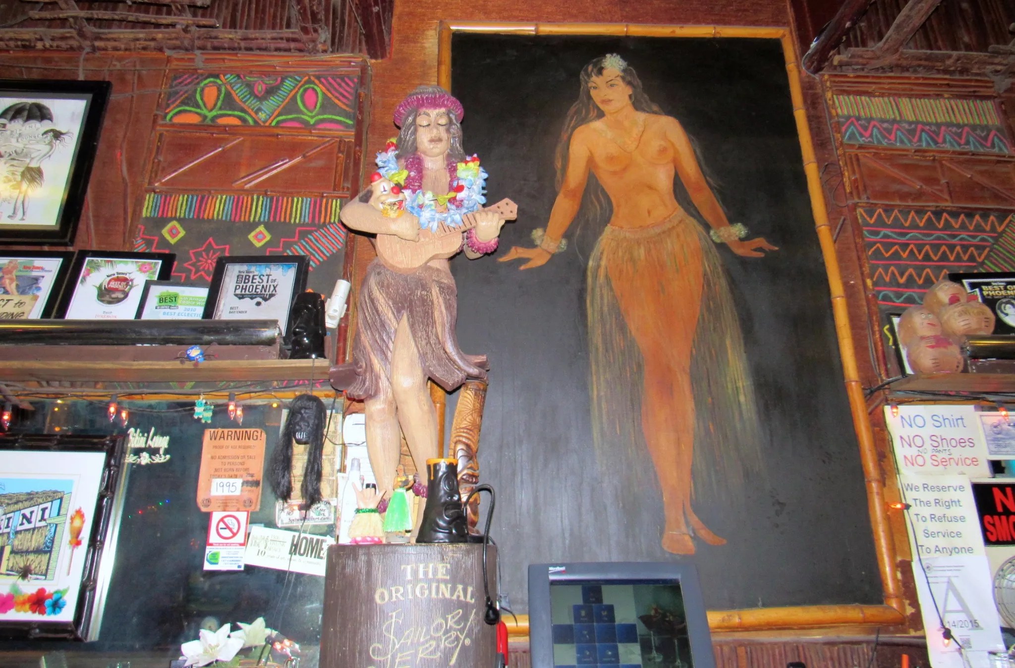 Named after Bikini Atoll in the Marshall Islands, the Bikini Lounge is a history lesson as well as a neighborhood bar. It’s been around since the late 1940s as one of the last of the first-wave tiki bars in Phoenix. The Bikini was remodeled in the ’60s, ornamented by Polynesian-lady-themed Tom Cooper murals, and has recently gained an enclosed patio and a bamboo-seeming bike rack out front. Bikini features an internet jukebox, a pool table, and DJ nights. Best thing about this place: the limited-edition, Jimmy Smith tiki mugs.
