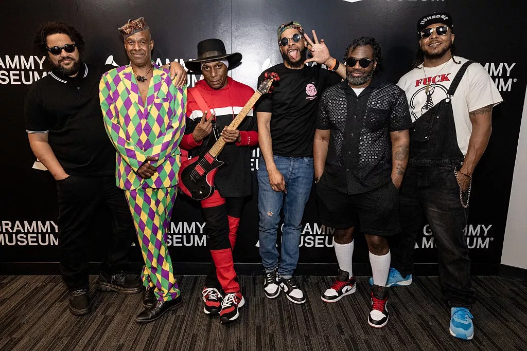 (L-R) Christopher Dowd, Angelo Moore, Tracey “Spacey T” Singleton, James Jones, John “JS” Williams II and Hassan Hurd of Fishbone attend An Evening with Fishbone at GRAMMY Museum L.A. Live on May 27, 2025 in Los Angeles, California.