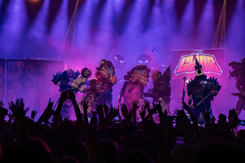 The room goes dark, and audience members begin chanting, “GWAR! GWAR!”