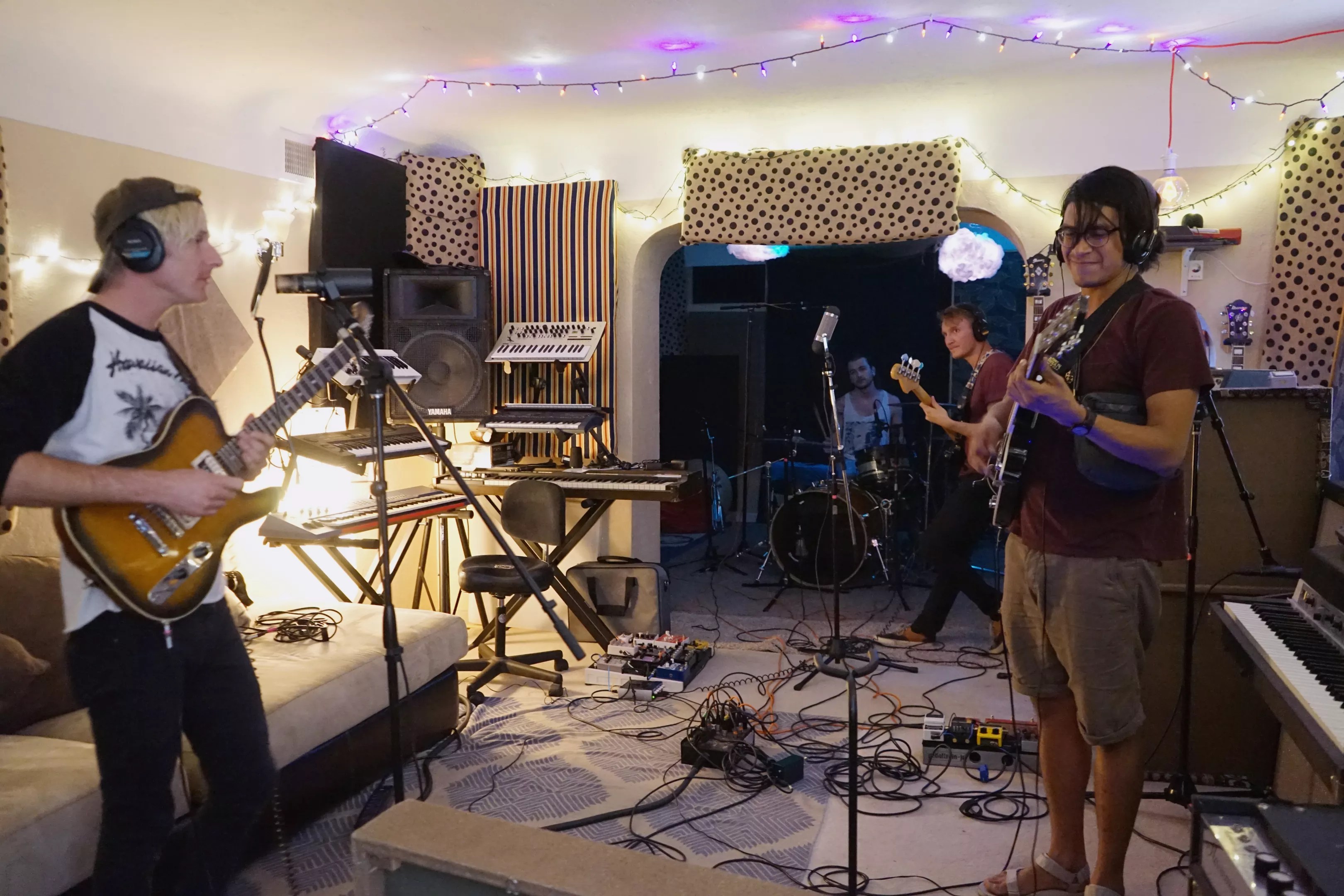 Vance Nowe and bandmates (left to right) Jacob Pettinato, Andrew Hredzak, and JJ Hernandez record during a recent session at Audile Collective.