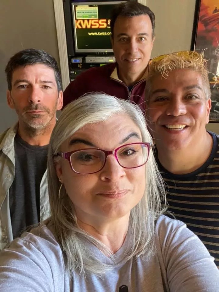 Some of the KWSS crew. From left are Jay Cairo, Dani Cutler, Dubs, Frank Magarelli, and Brian DeFox. Magarelli is the station's founder and owner; the others are volunteer radio hosts.