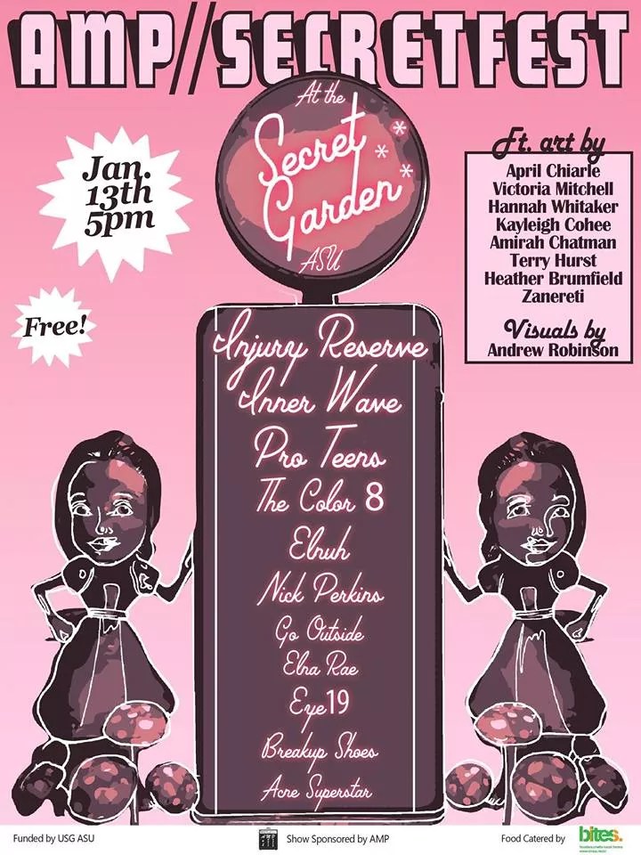 If you can’t wait to see Injury Reserve, they’ll be headlining Secretfest, an intimate show hosted by Amp ASU at the Secret Garden on ASU’s Tempe Campus on Saturday, January 13.
