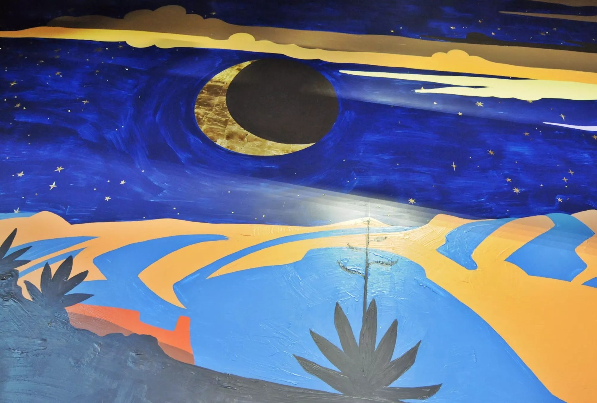Created by artist and designer Gary Patch of Tucson-based company Patch & Clark Design, who helped create The Van Buren’s look, it depicts an epic Arizona desert landscape transitioning from day into night.