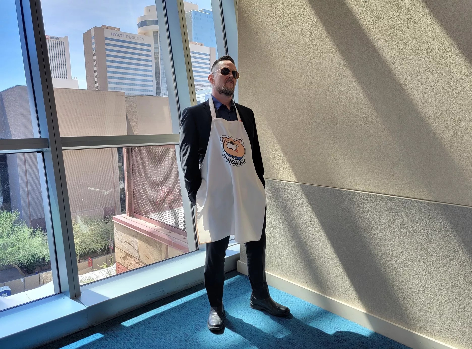 Fitz Madrid cosplaying Tatsu from “Way of the Househusband” at Phoenix Fan Fusion in 2022.