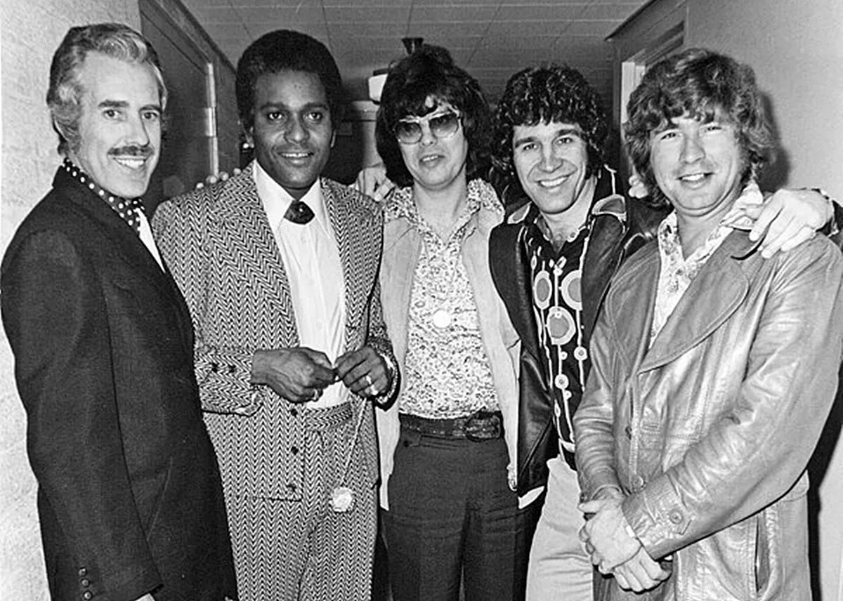 Charley Pride (second from left) with promoter and radio deejay Ray Odom (left), Ronnie Milsap (center), Mr. Lucky’s original owner Bob Sikora (second from right) and the nightclub’s manager Don “Bunky” Legate in the 1970s.