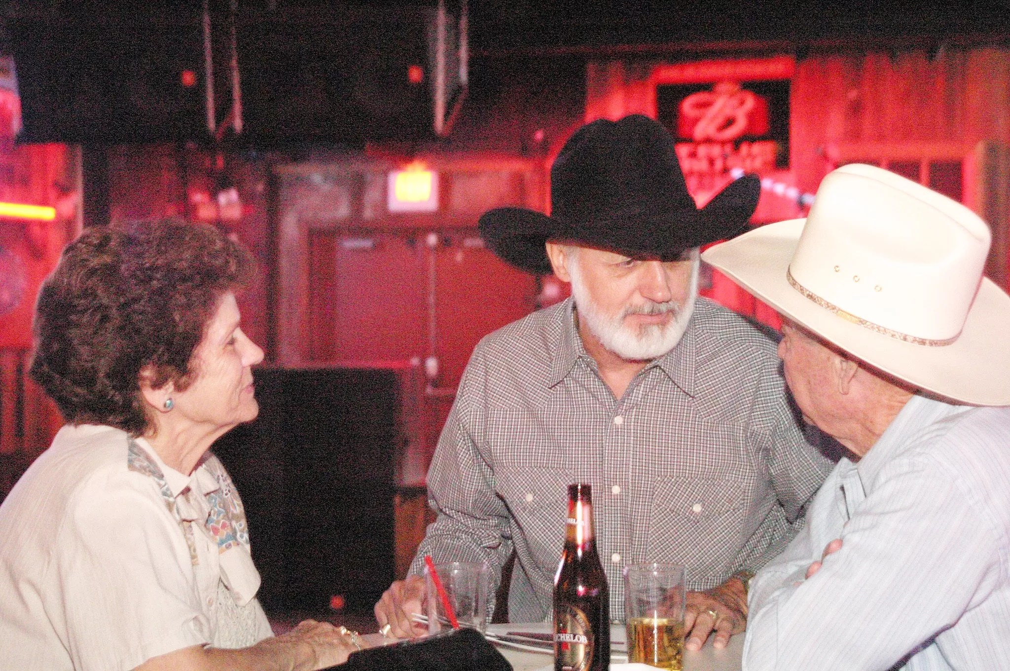 Arizona country musician and Mr. Lucky’s owner J. David Sloan speaking with two patrons of the bar.