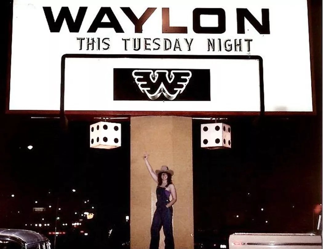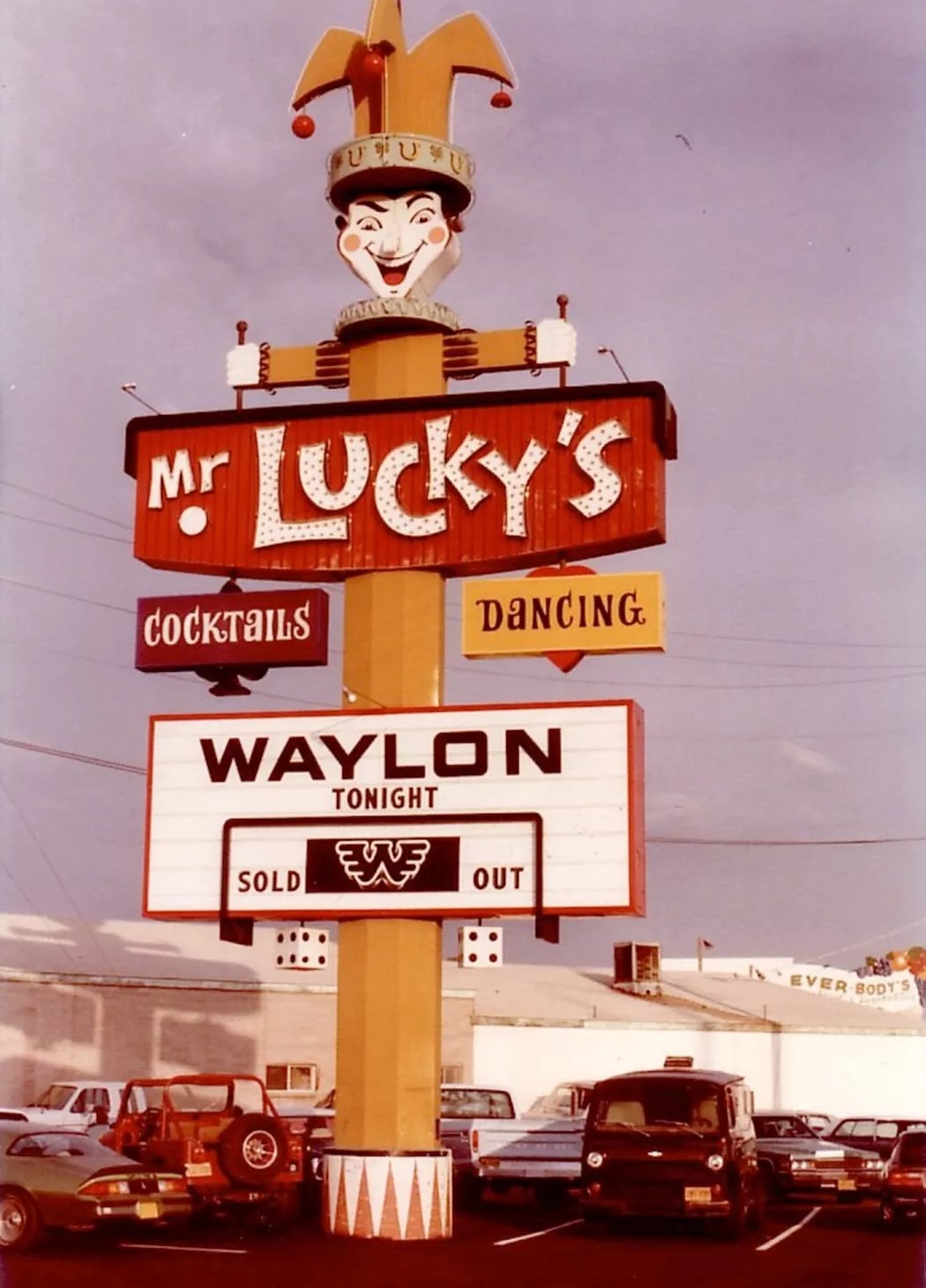 The sign outside of Mr. Lucky’s on the night in 1980 when outlaw country legend Waylon Jennings recorded his ABC television special at the nightclub.