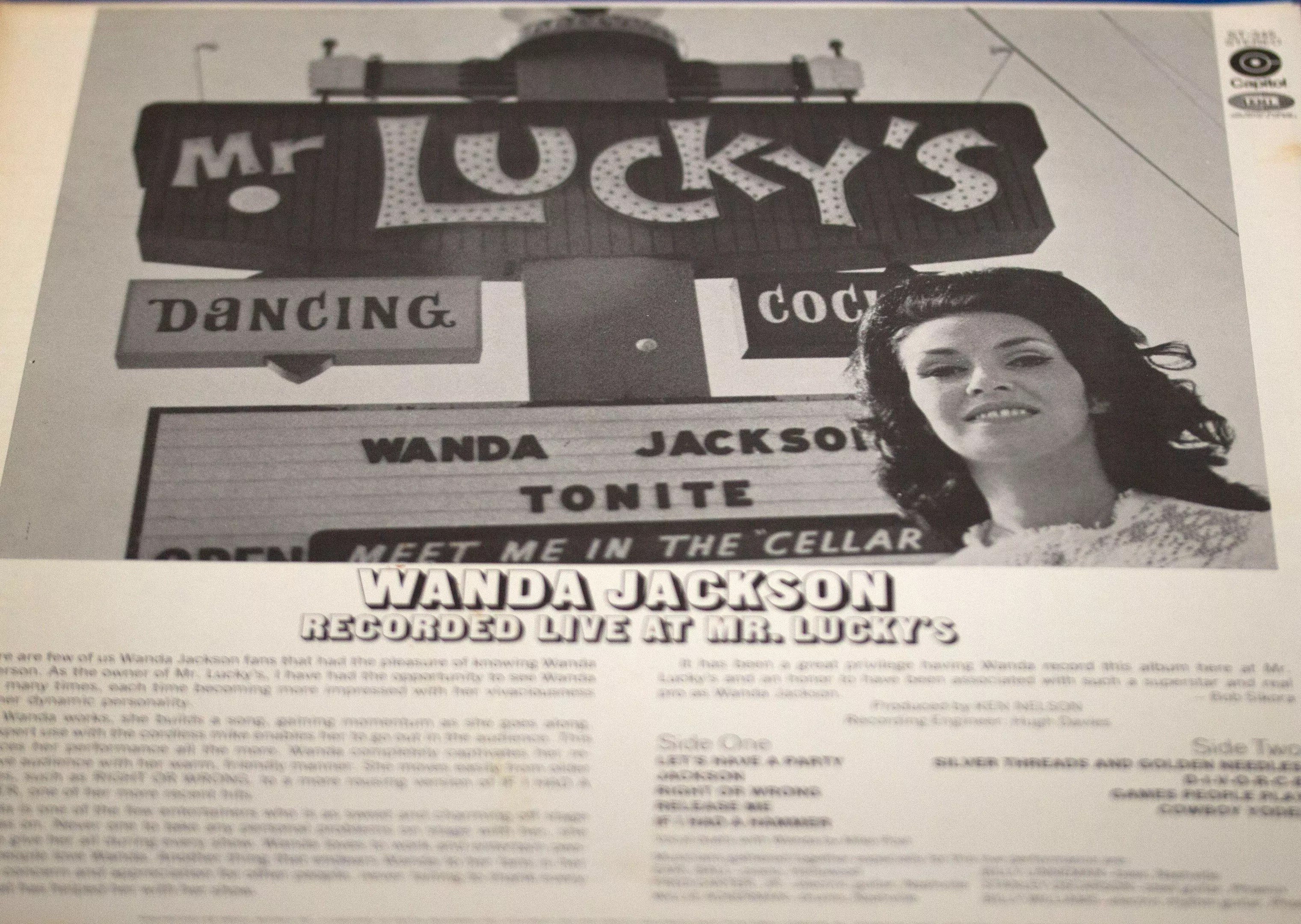 Country music legend Wanda Jackson recorded her 1969 live album “Wanda Jackson in Person” at Mr. Lucky’s. The record sleeve featured a picture of Jackson in front of Mr. Lucky’s sign.