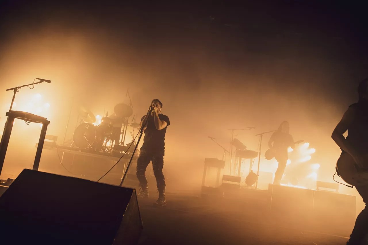 Opening up with a trio of Broken cuts (“Wish,” “Last,” and “Happiness in Slavery”), the band were shrouded in smoke. Flickering red and white lights onstage threw up their shadows on the gray backdrop and phased them in and out, making their silhouettes look like shadow puppets or stop motion animations. Whereas on their Tension Tour the band was clearly defined and easy to see, they were now looming shadows, huddled and determined bodies tearing into their instruments in the fog like a gang of Jack the Rippers.