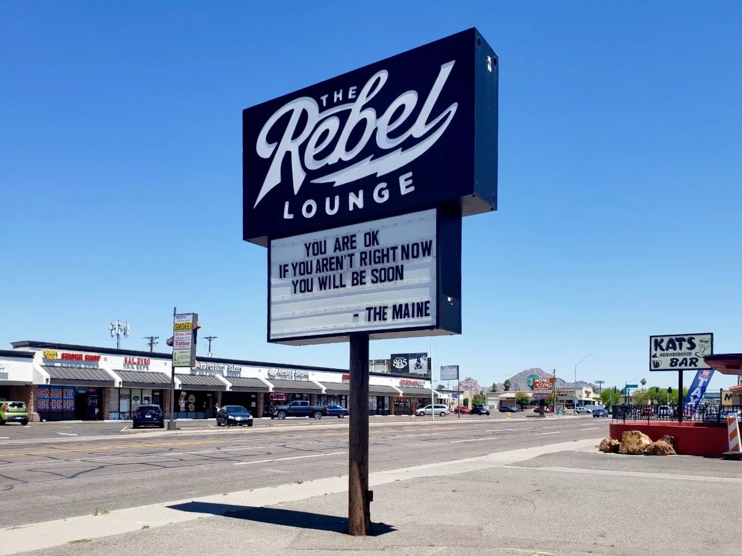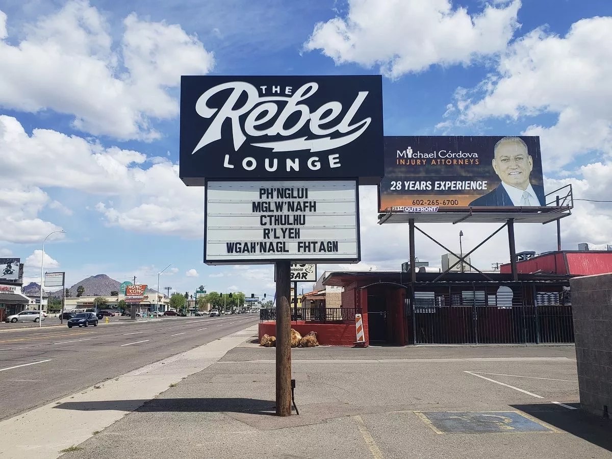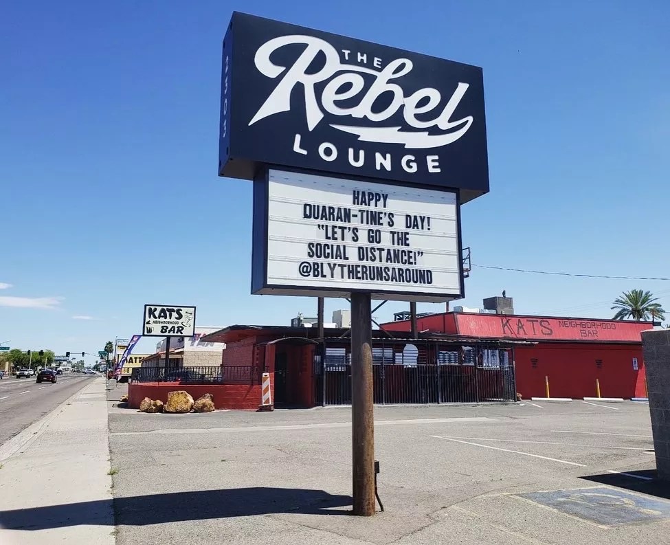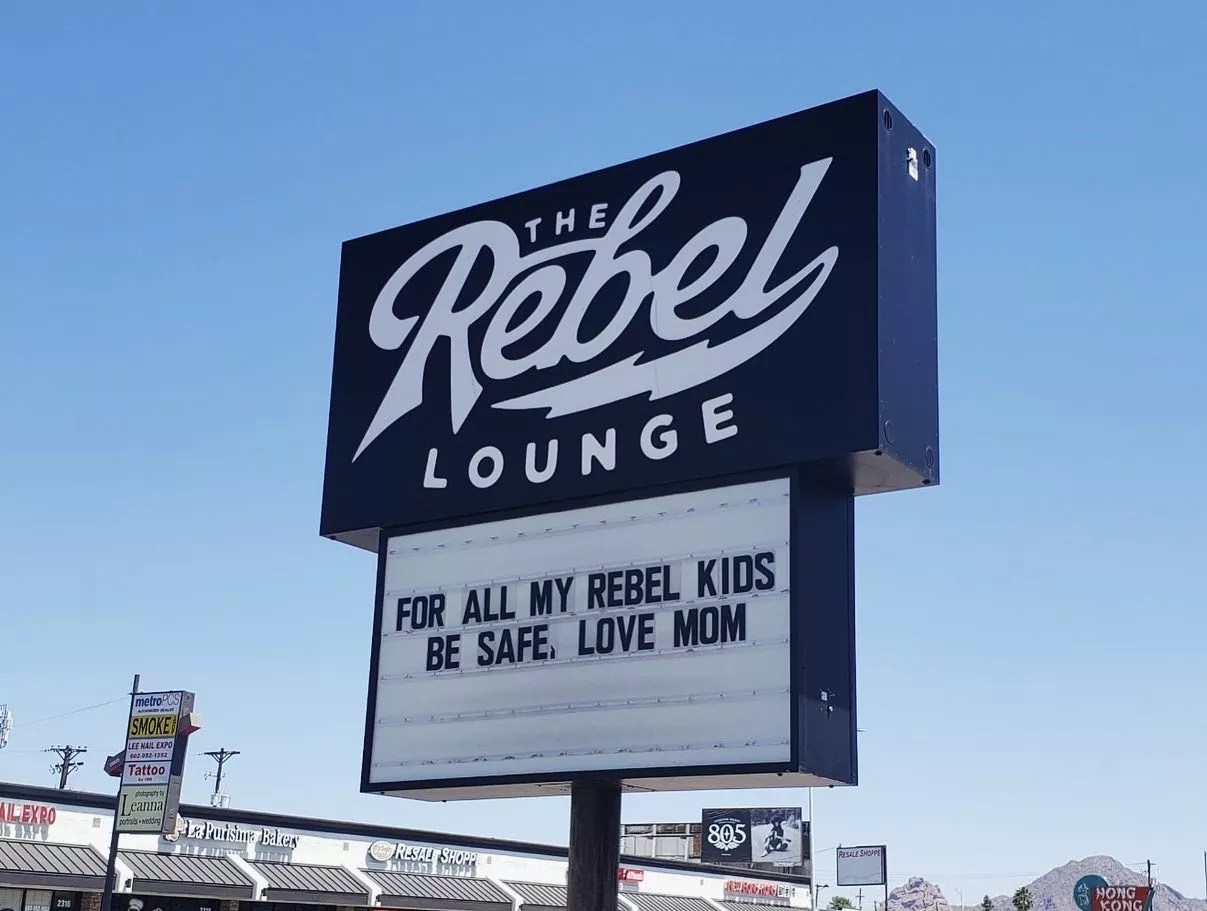 The Rebel Lounge may be closed for now, but its marquee is putting on a show.
