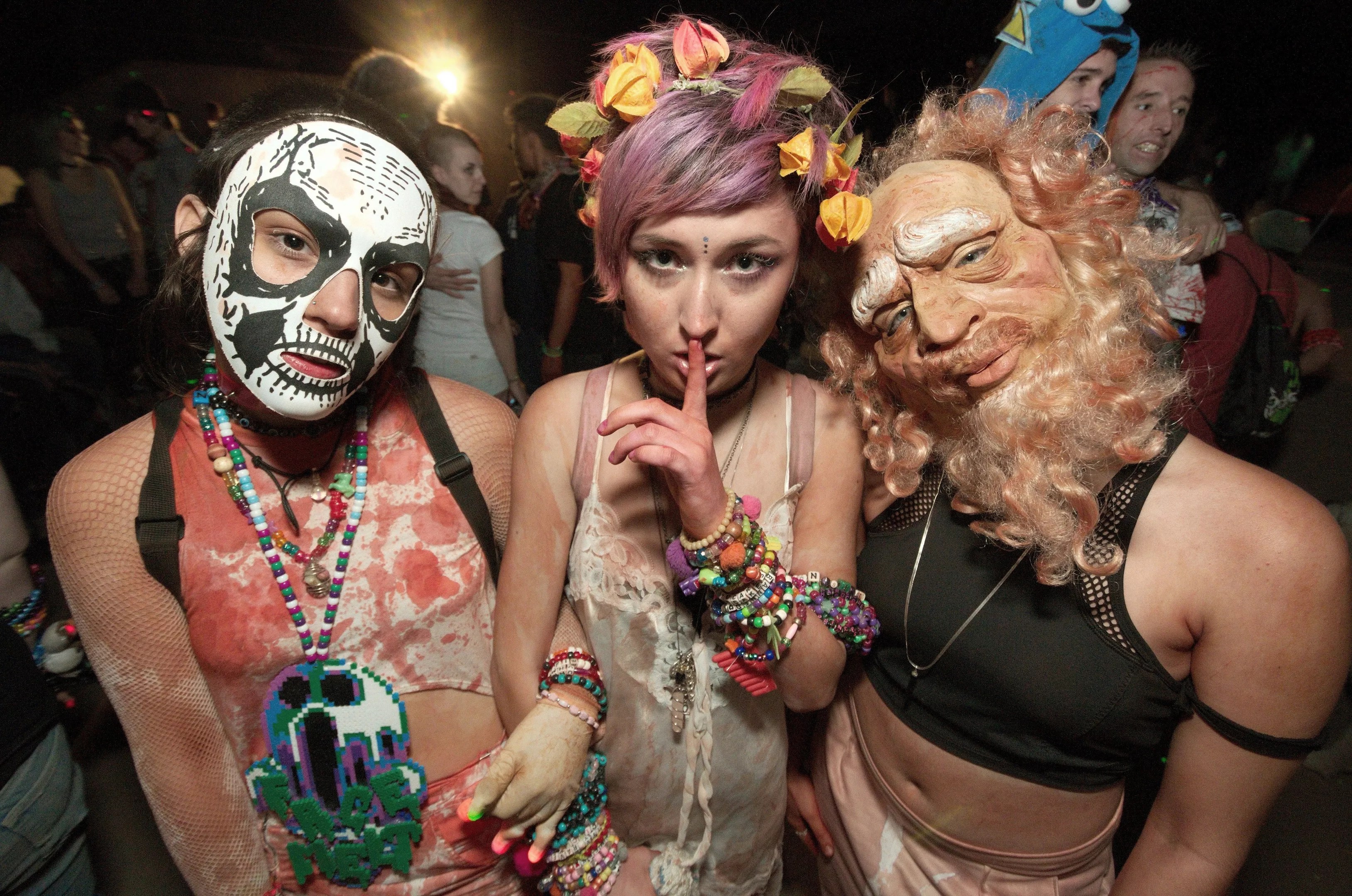 Getting to the event itself, for instance, involves either being in the know or hitting up the internet for directions to its clandestine location. And once you’re there, expect to be doused with crimson-colored fake blood that rains down from above or is sprayed onto attendees using Super Soaker-like water guns. Elsewhere, you can hitched during tongue-in-cheek “blood weddings” or witness bizarre skits and equally strange performance art pieces take place while local DJs spin a hard-hitting cannonade of electronic dance music genres.