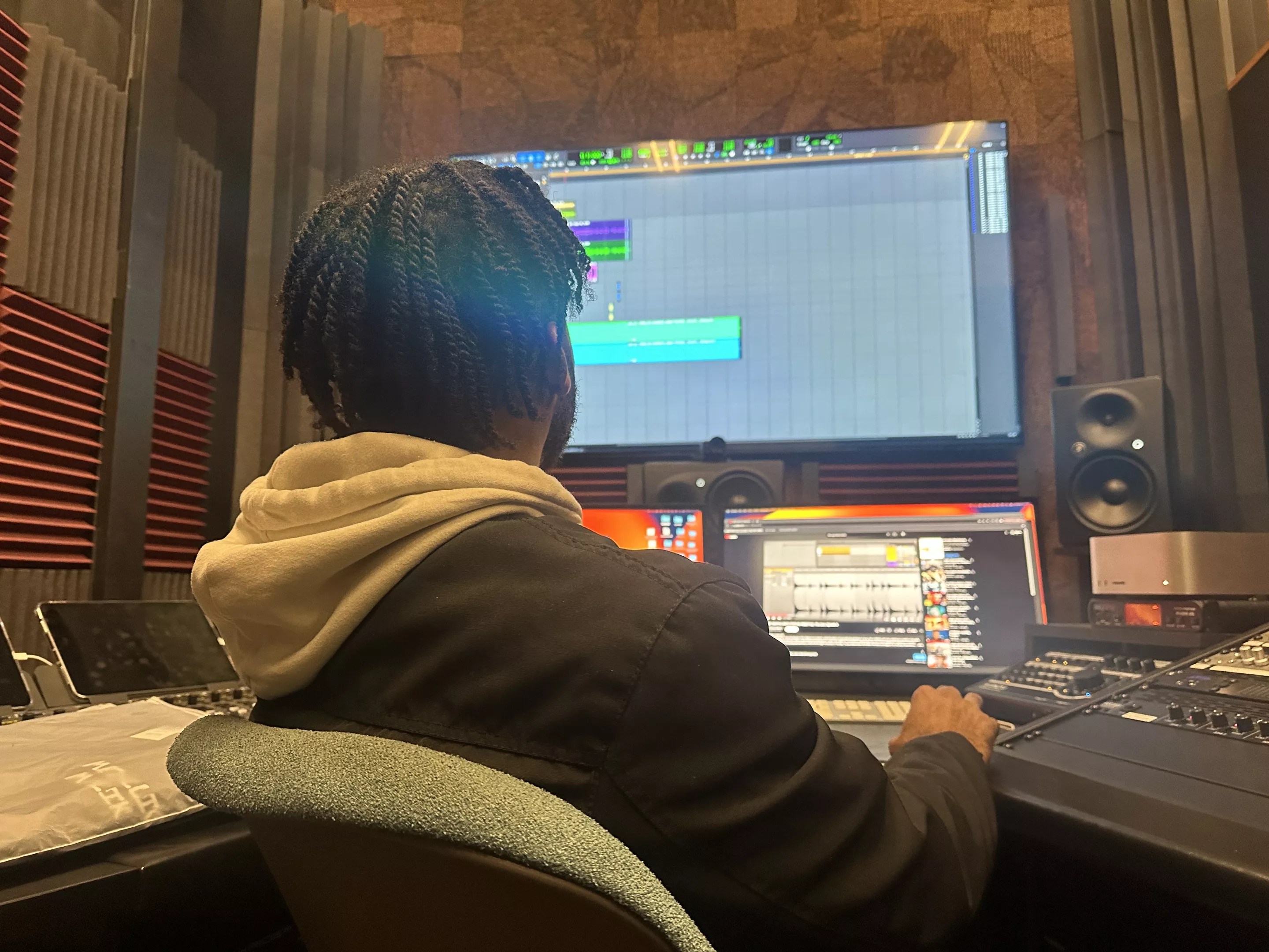 Arizona artist Metallic Malik working in FL Studio in an ASU music studio on the West Valley Campus in Phoenix on Nov. 8, 2024.