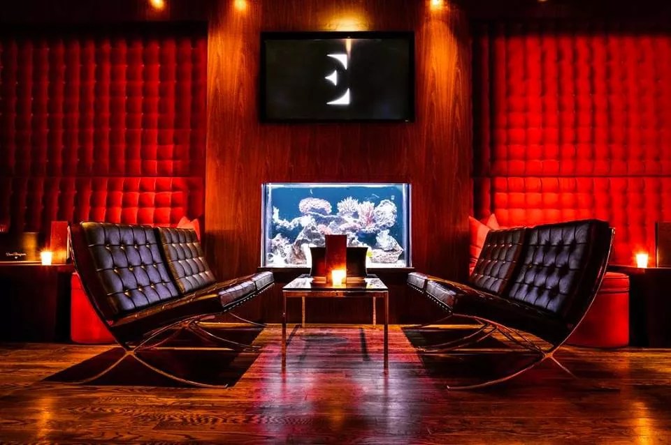 There’s also a floor-to-ceiling waterfall, a color-changing LED wall behind the bar, a seasonal drink menu, and a private entrance in the back for VIPs.