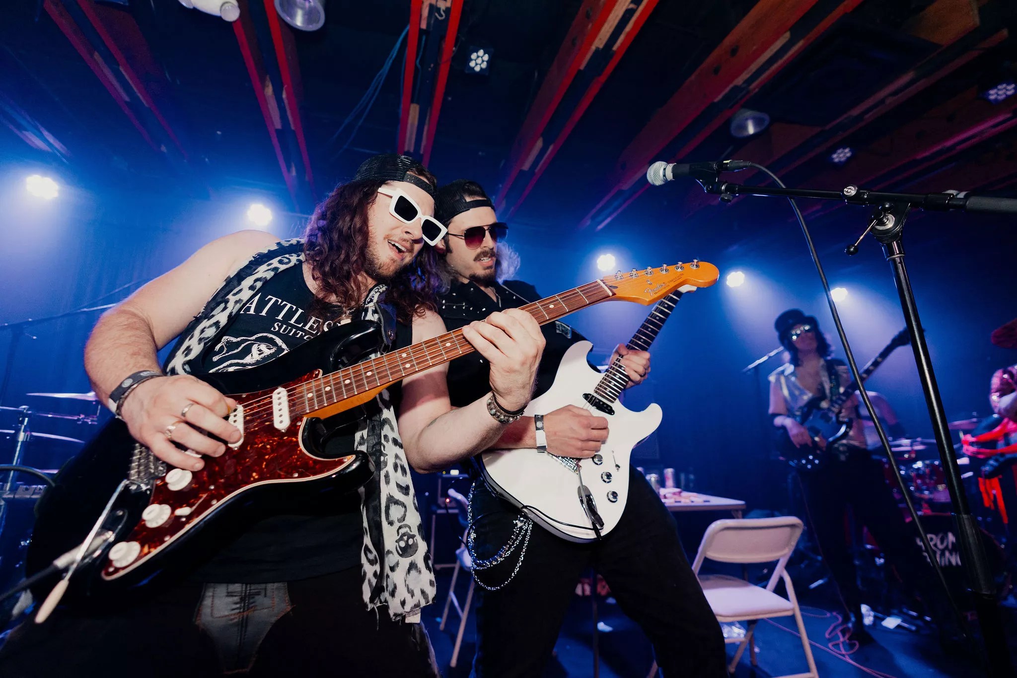 The Rock ‘N’ Roll Rumble was somehow even more bizarre and lovely than promised by either Chrome Rhino’s Jared Michael or Jarrod Compton of Rattlesnake Suitcase. This musical grapple fest was marked by high-energy performances, heaps of theatricality and a wild, skittish energy central to all great rock music. The two bands took part in an eight-round confrontation, with each performing original tracks as well as decade-spanning covers in pursuit of the only thing that matters: audience approval and a shiny championship belt.