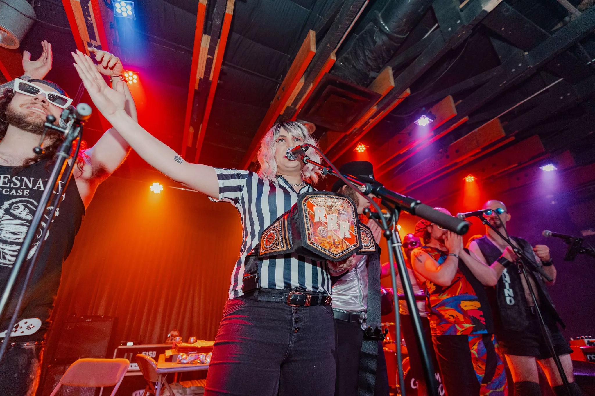 Of course, the gimmicky nature of the Rumble still mattered to a certain degree, and in fitting with the wrestling theme, we got the sweetest swerve this side of the Montreal Screwjob. Referee Daphne Greene (of Daphne + The Glitches) held onto the championship belt, citing their exemplary performance as that night’s mediator. The bands didn’t seem to care much, though, as everyone joined in for a show-closing edition of Lynyrd Skynyrd’s “Free Bird.” You quite literally cannot make this stuff up.