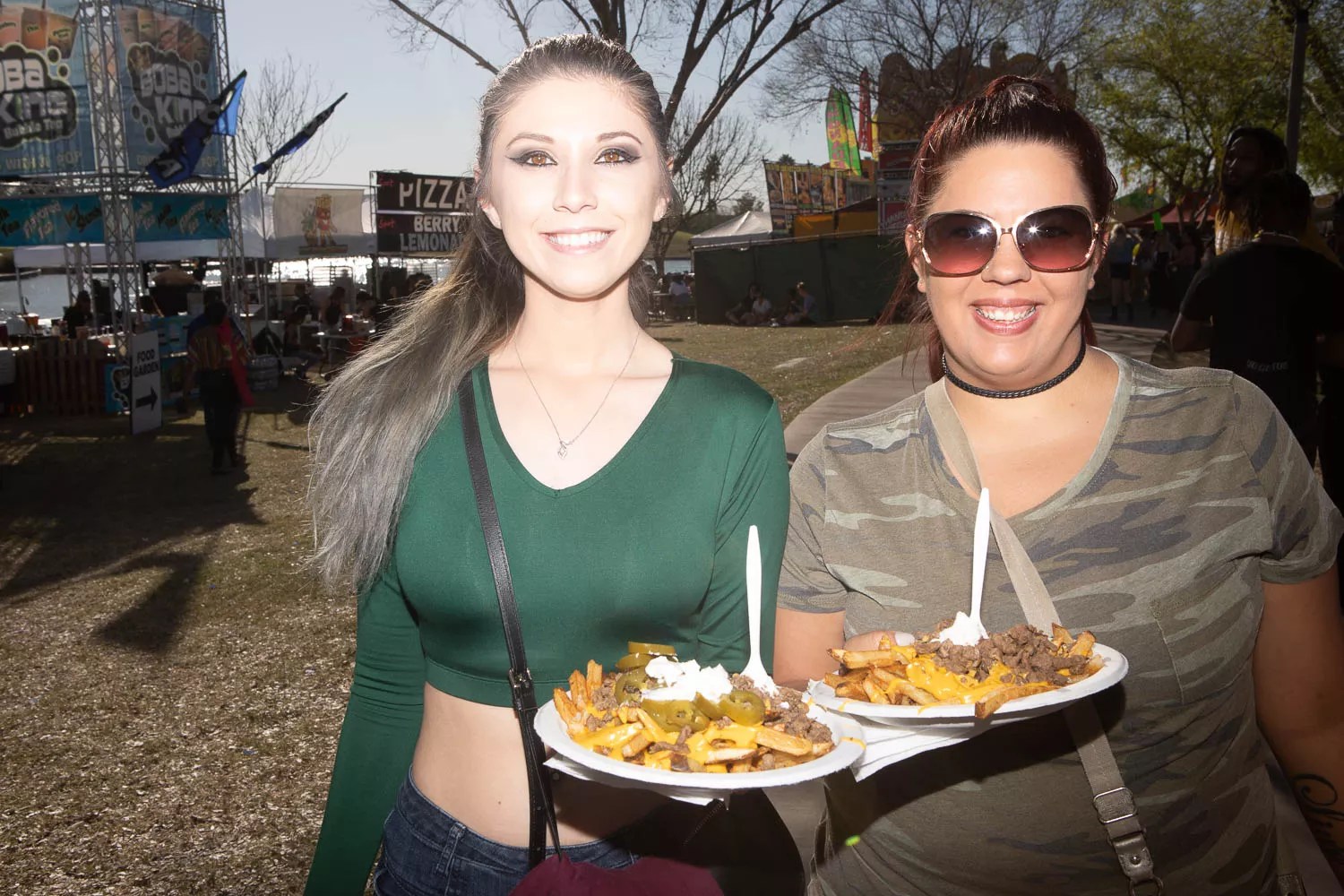 One thing that helped Pot of Gold stand out from other music festivals was its commitment to looking, sounding, and smelling like a state fair in all its fried, rinky-dink glory. There were fried Twinkie stands, fortune tellers, giant inflatable mushrooms, zombie paintball booths, and honest-to-God carnival rides. A funhouse mirror attraction, two Ferris wheels, and other rides, all glowing bright at night with flashing neon lights, were just a hop and a skip away from the music stages. And all the artist booths and clothing vendors scattered around the lake gave the event a carny feel. The only thing that was missing was the rigged “win a stuffed animal for your sweetie!” game booths. Ashley Naftule