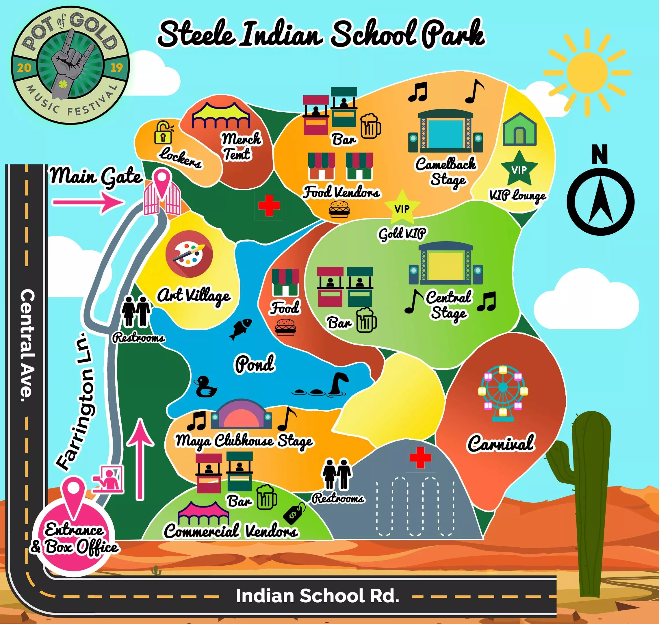 What’s the best way to get there? Light rail is your best bet. A station is located on Central Avenue just north of Indian School Road and you can ride for free with your Pot of Gold ticket. Ridesharing services like Uber and Lyft are always an option, and festival organizers will have a special deal going with Lyft all three days (details can be found here).