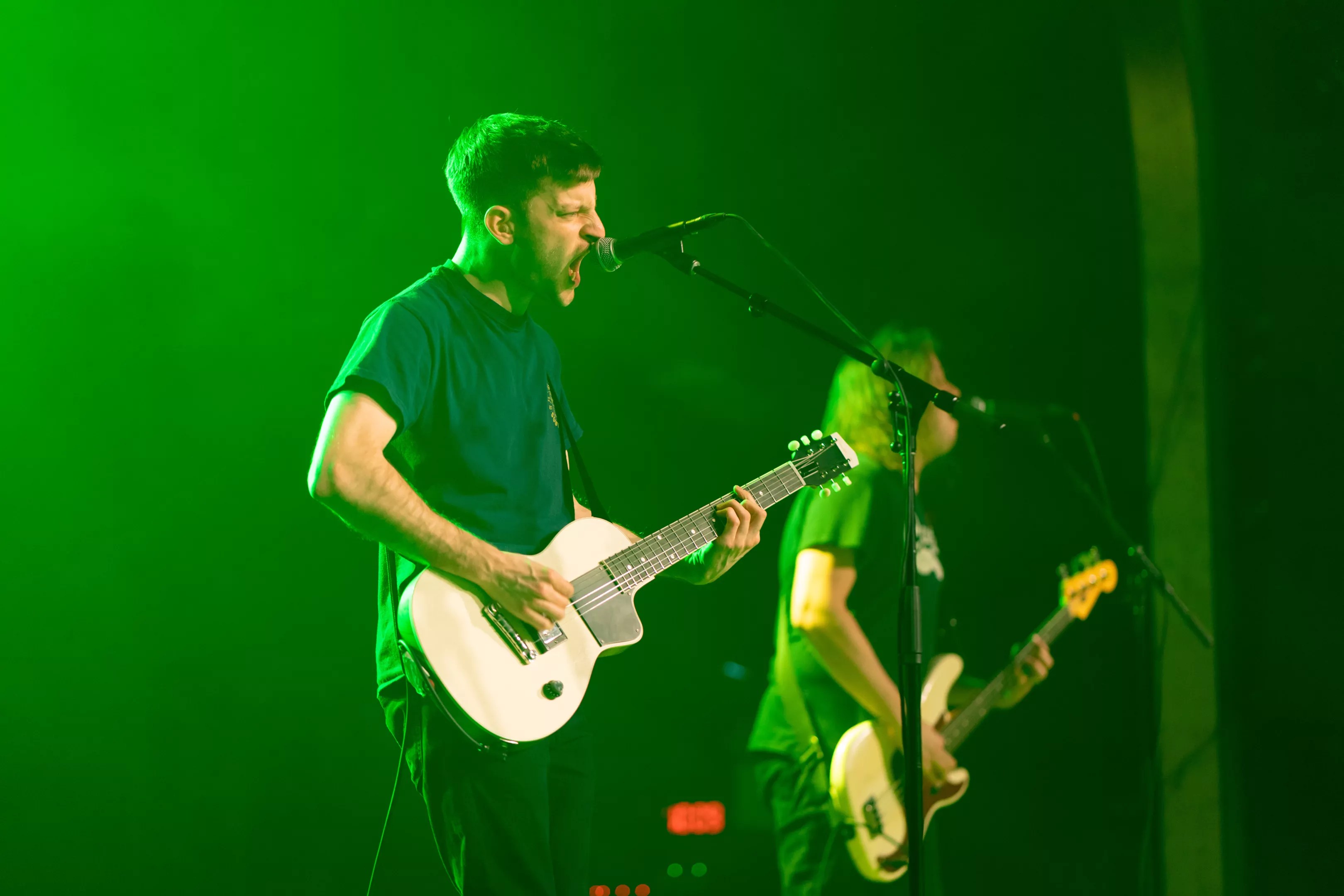PUP’s set was also fairly no-frills. The stage was just a dark backdrop with their name scrawled across it in huge, wavy, white letters. The quartet of Canadian pop-punkers started their set with the title track off Morbid Stuff. While they played a fair amount of songs off their older records, most of their set was devoted to new material. That was a wise choice: Morbid Stuff bops, slays, jams, and thoroughly rips. PUP raced through their set with the kind of playful and generous energy you normally see in a young dog.