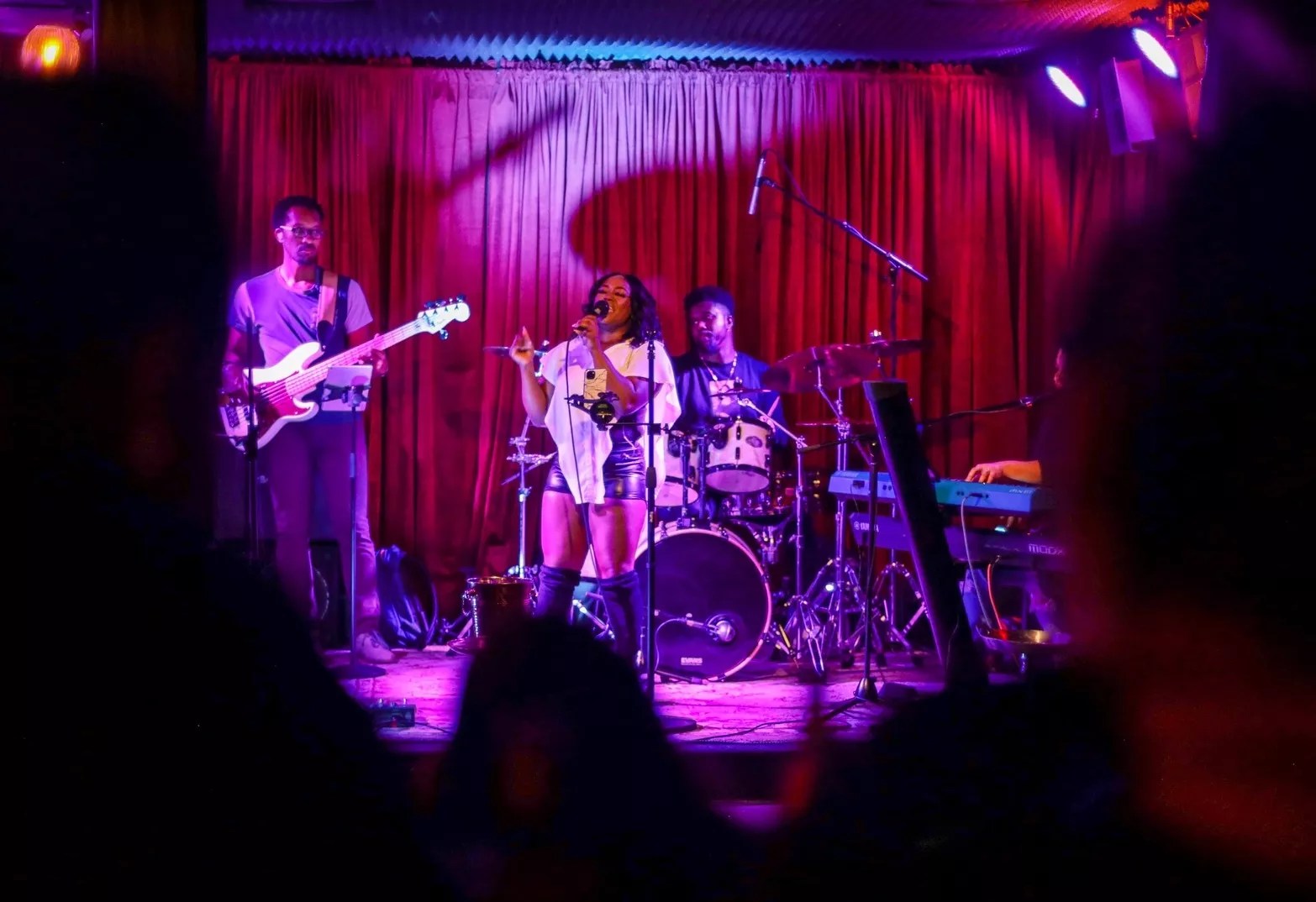 Alexis Janae (center) during a 2022 performance at Chars Live.