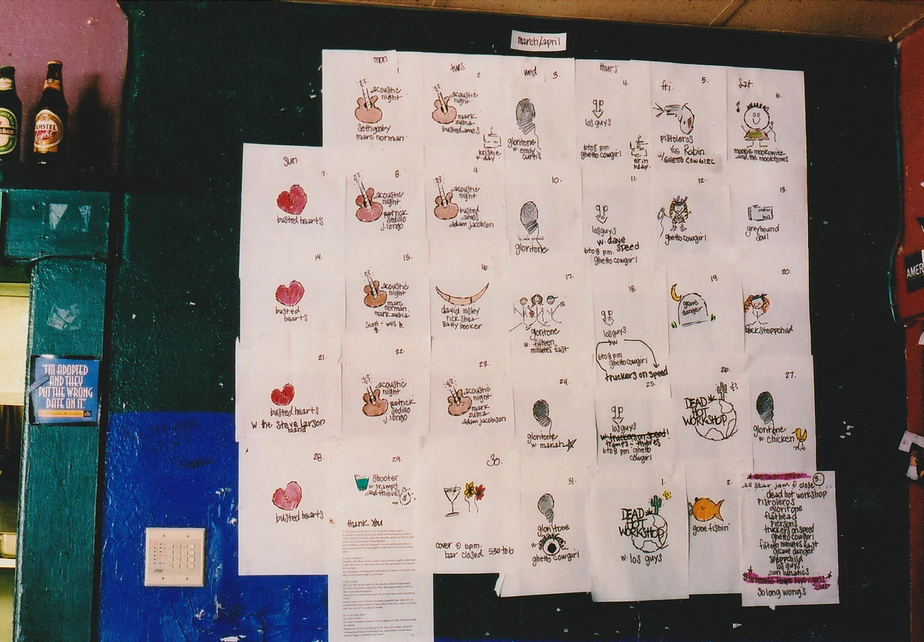An example of Sara Cina’s beloved hand-drawn concert schedules.