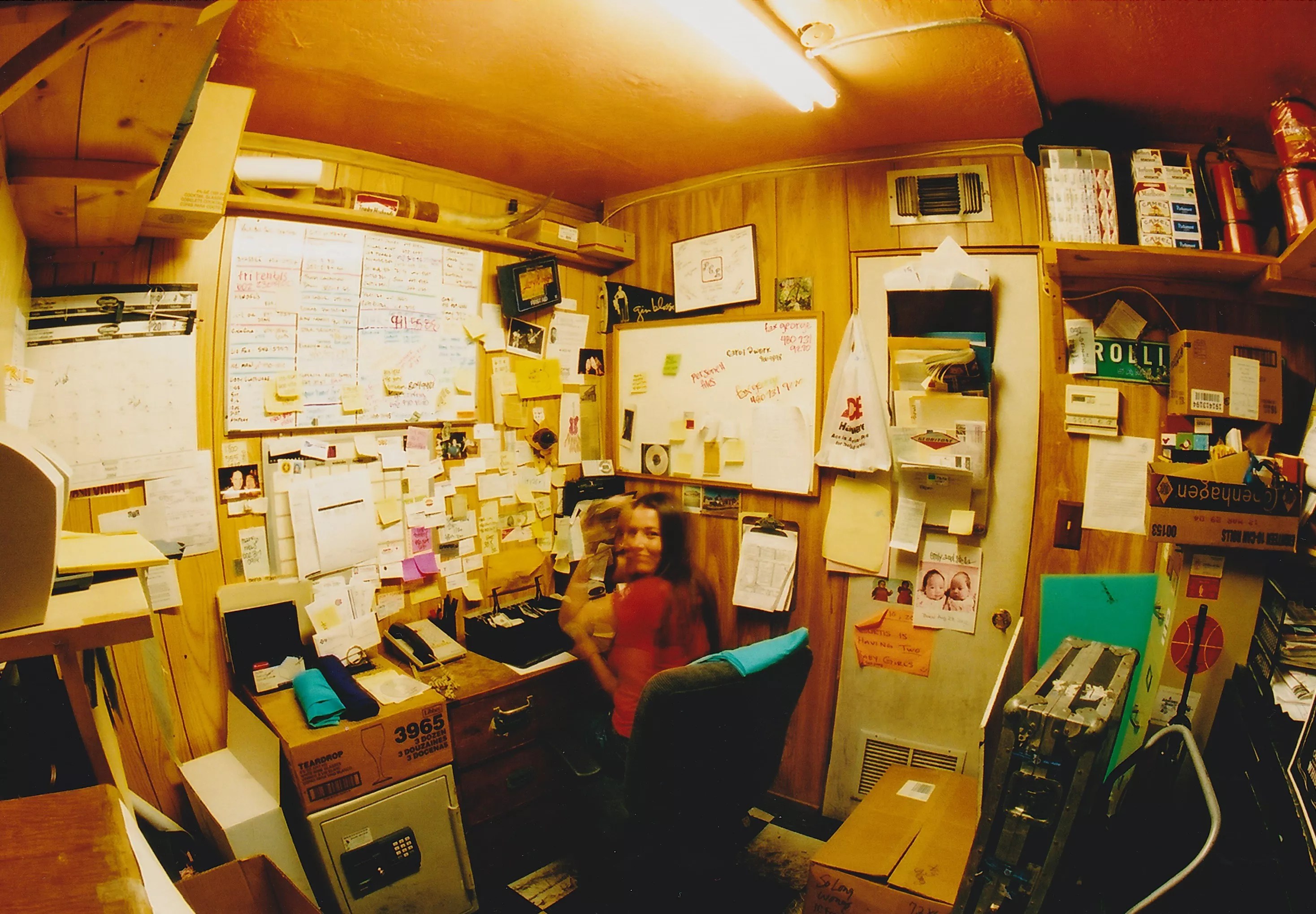 Carter: That little room got so smoking hot and heated up that most of the time that door was open and all of the time that curtain was open behind the drummer.