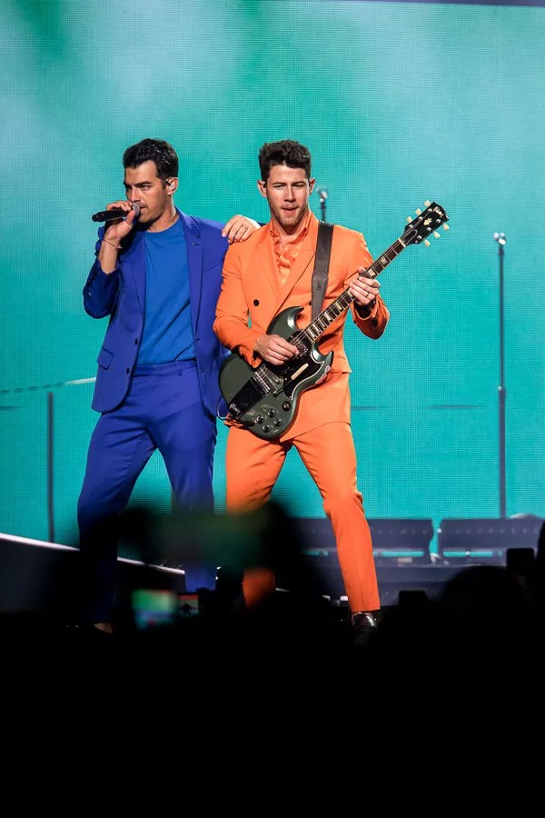 For part of the show, the brothers moved from the main stage to an ancillary stage on the opposite end of the arena, where they joked about how things have changed since the last time they performed together – including the fact that they’re old enough to drink now. Each raised a shot glass, temporarily transforming the arena into a giant ad for Nick’s new tequila venture.