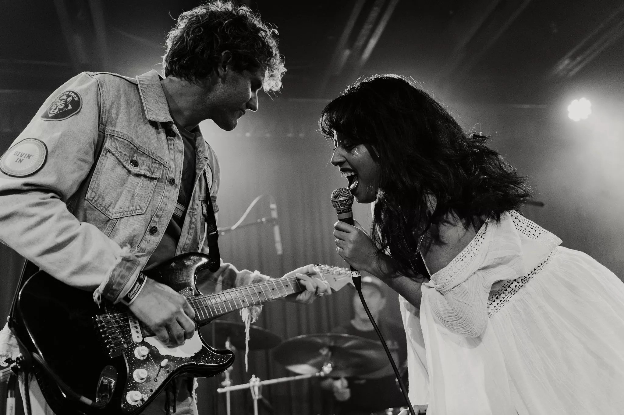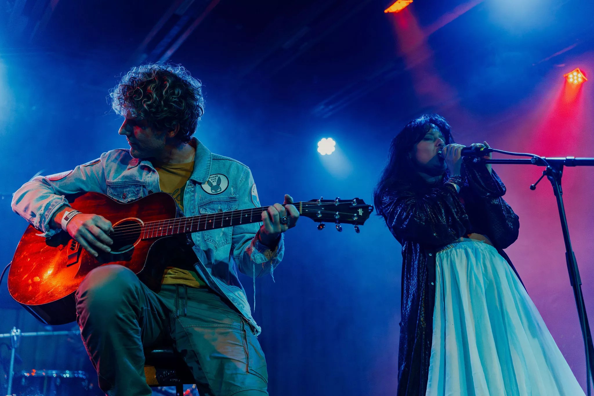 Sarah Cannon and Joshua Strickland harmonizing during the set from These Are Aliens.
