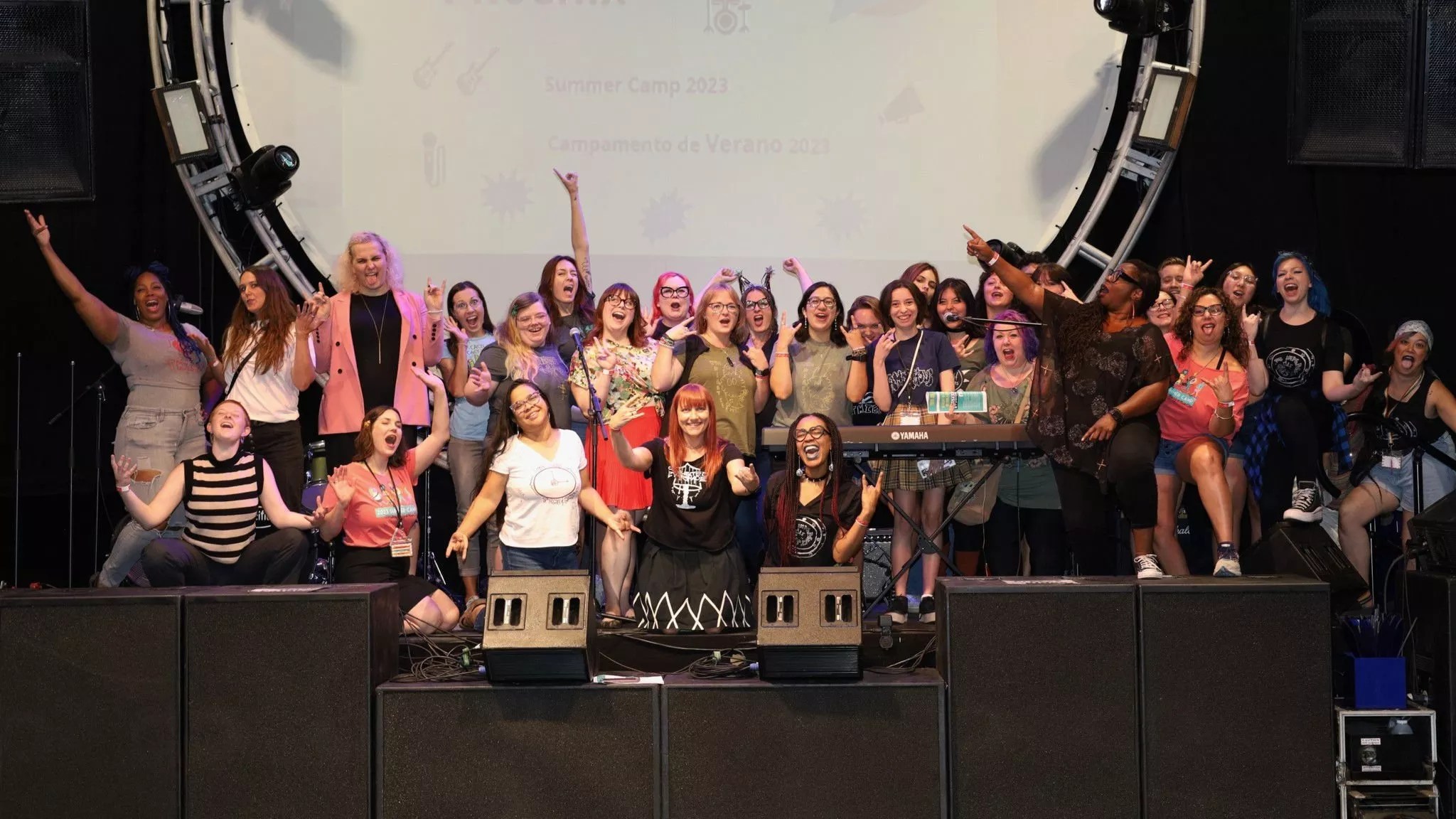 “Campers come in without having to have any experience and they learn how to play an instrument, they form a band, get music instruction, coaching and support, write an original song and perform at a community showcase on stage for hundreds of people,” Young says. “Beyond that, though, is the opportunity to meet other campers and camp leaders from all walks of life and to learn about thoughtful and productive communication and to feel empowered, and to take up