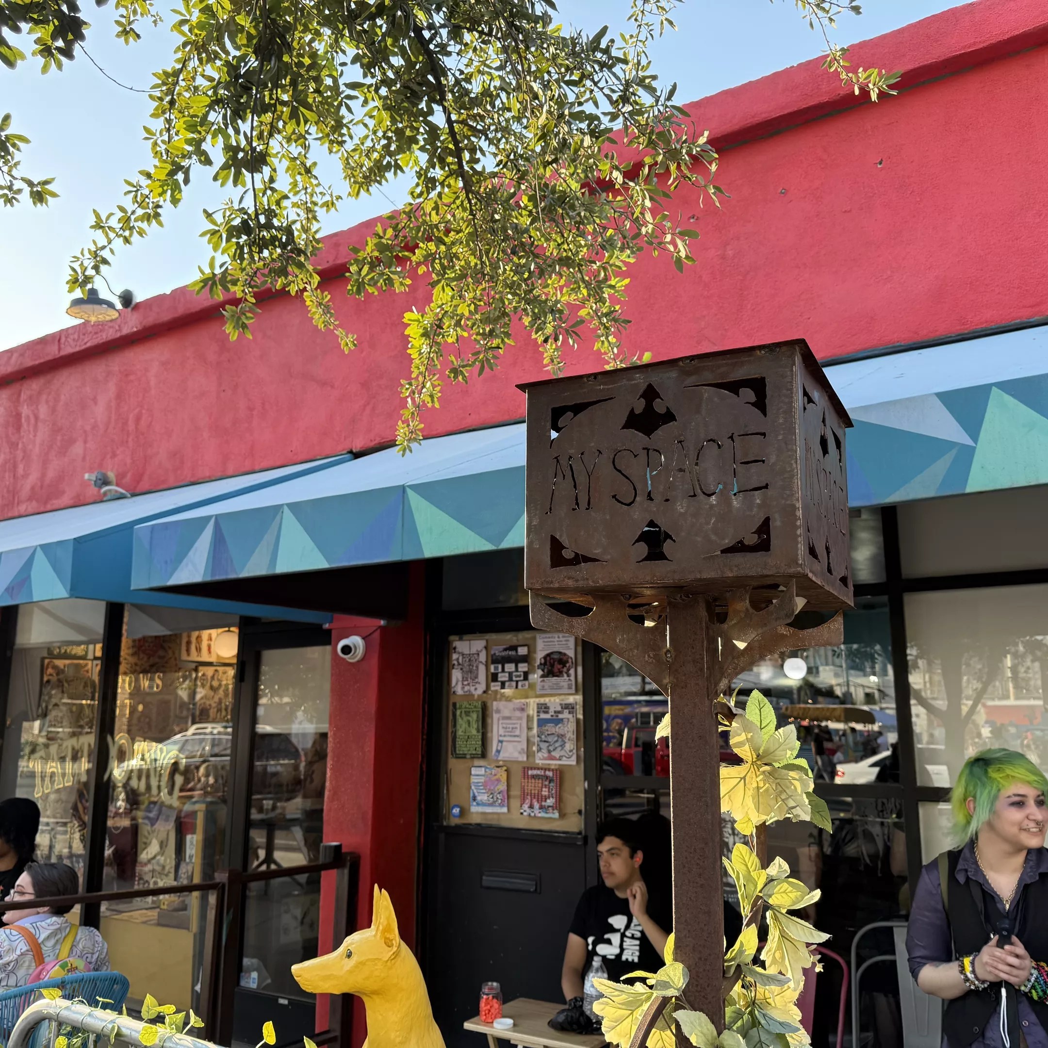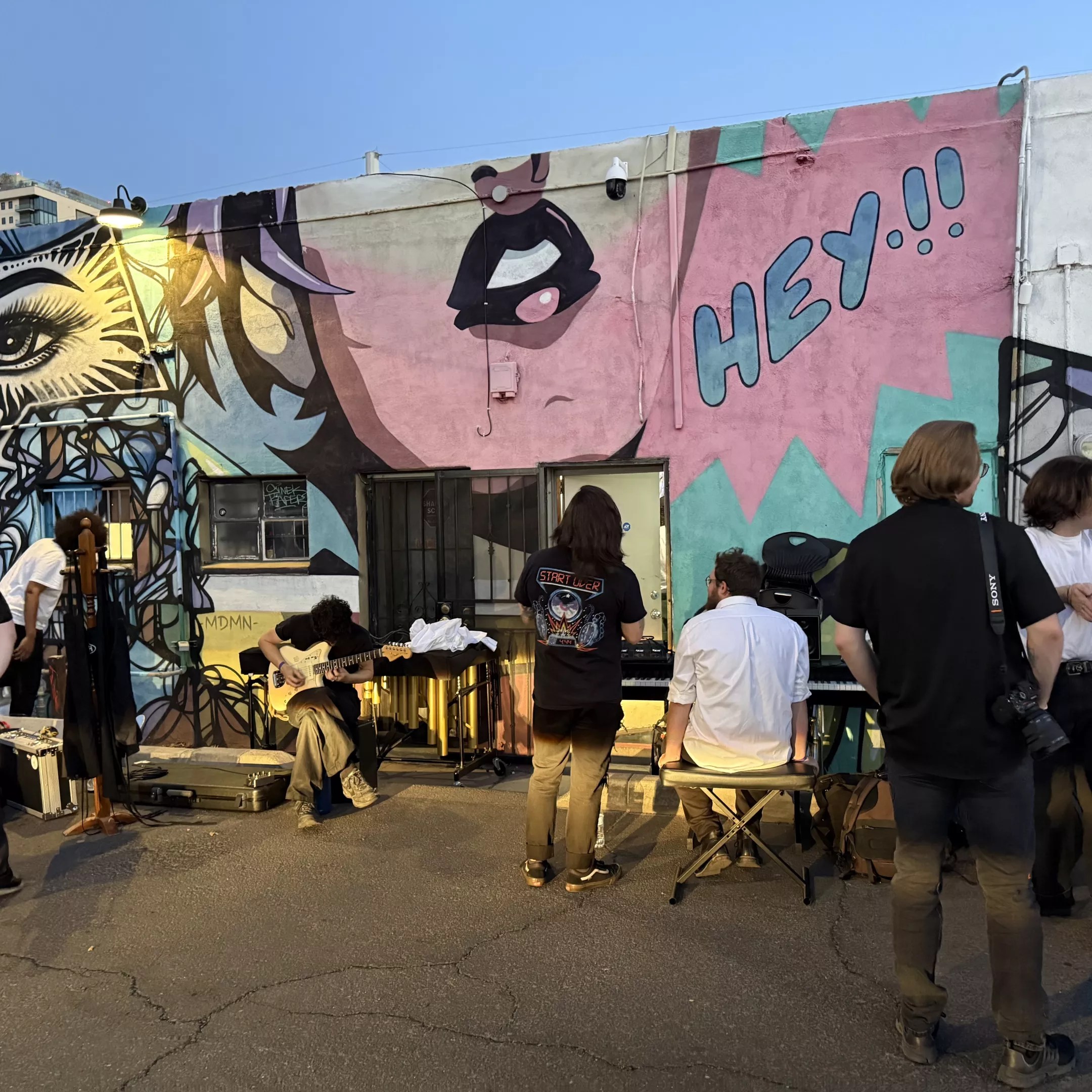 A sold-out crowd of more than 30 people stood shoulder to shoulder inside the MySpace art gallery to watch the bands perform. Bodies were jumping, heads were banging, and the music was deafening. The hosts generously provided attendees with complimentary earplugs to use at will.