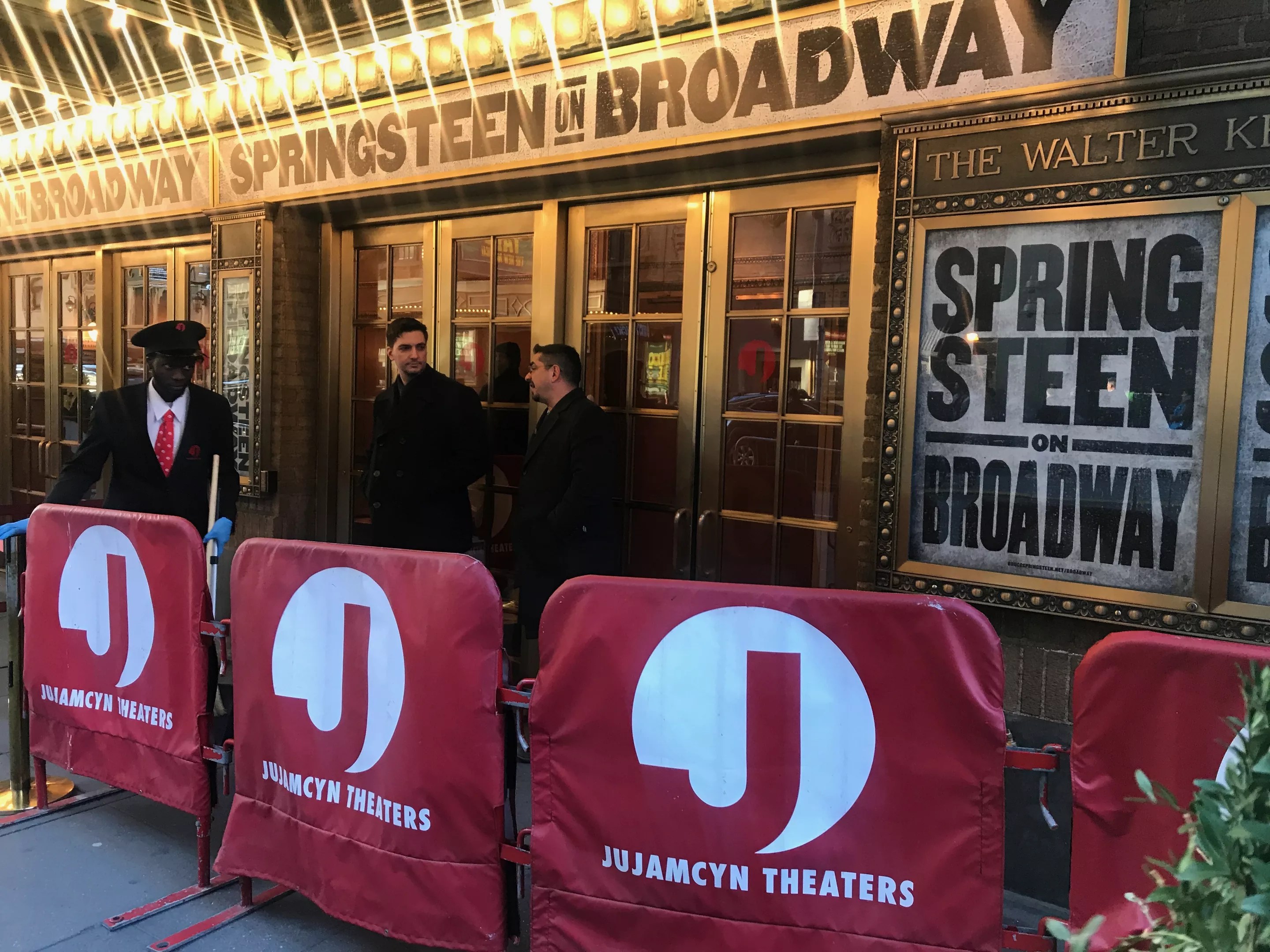 I’ll get to relive the buzz in the theater before Springsteen takes the stage, where the simple set includes an upright piano, stool, mic stand, and smattering of amplifiers with trailing black cords.