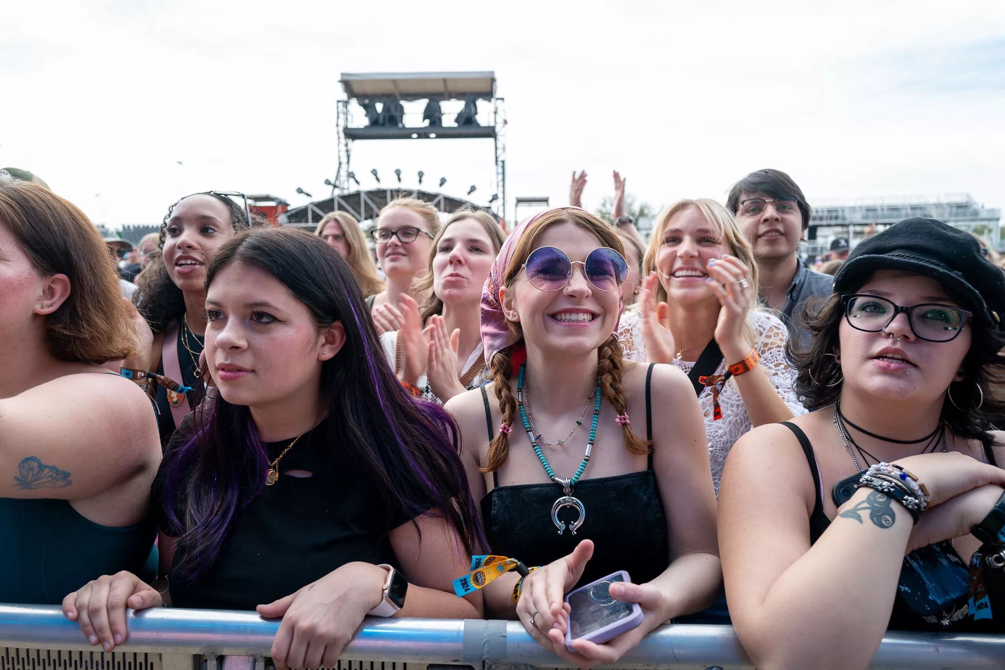 I’ve spent more than my fair share of column space trying to figure out the overarching identity of Innings Fest. Is there as much overlap between baseball and indie rock as they wagered on this whole time? (The answer seems a solid yes.) But while it befuddles some journalists, that open-ended approach does have its fair share of benefits. As it turns out, that includes doing a kind of loose, mostly unofficial “theme” across both days. While Friday’s festivities were all about legends like 311 and Red Hot Chili Peppers, the bulk of the undercard for Saturday was for up-and-comers like Cannons and The Criticals. Sure, Third Eye Blind also played, but they were easily viewed as an outlier amid a lineup of younger bands being given a chance to grow their base even further. Even Saturday’s headliners, Macklemore and Hozier, are younger than those legends, and demonstrative of a newer class of elite bands headlining fests like this one. It feels like an understated way to make the fest feel even more novel, and in a way that puts the focus on the music (at a time when younger and/or indie artists need more exposure than ever before). Talk about a home run, yeah? CC Fans watch Greta Van Fleet during Innings Festival 2024. Neil Schwartz Photography