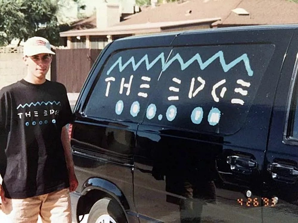 A 1993 photo showing off The Edge’s original logo on a van owned by the station.