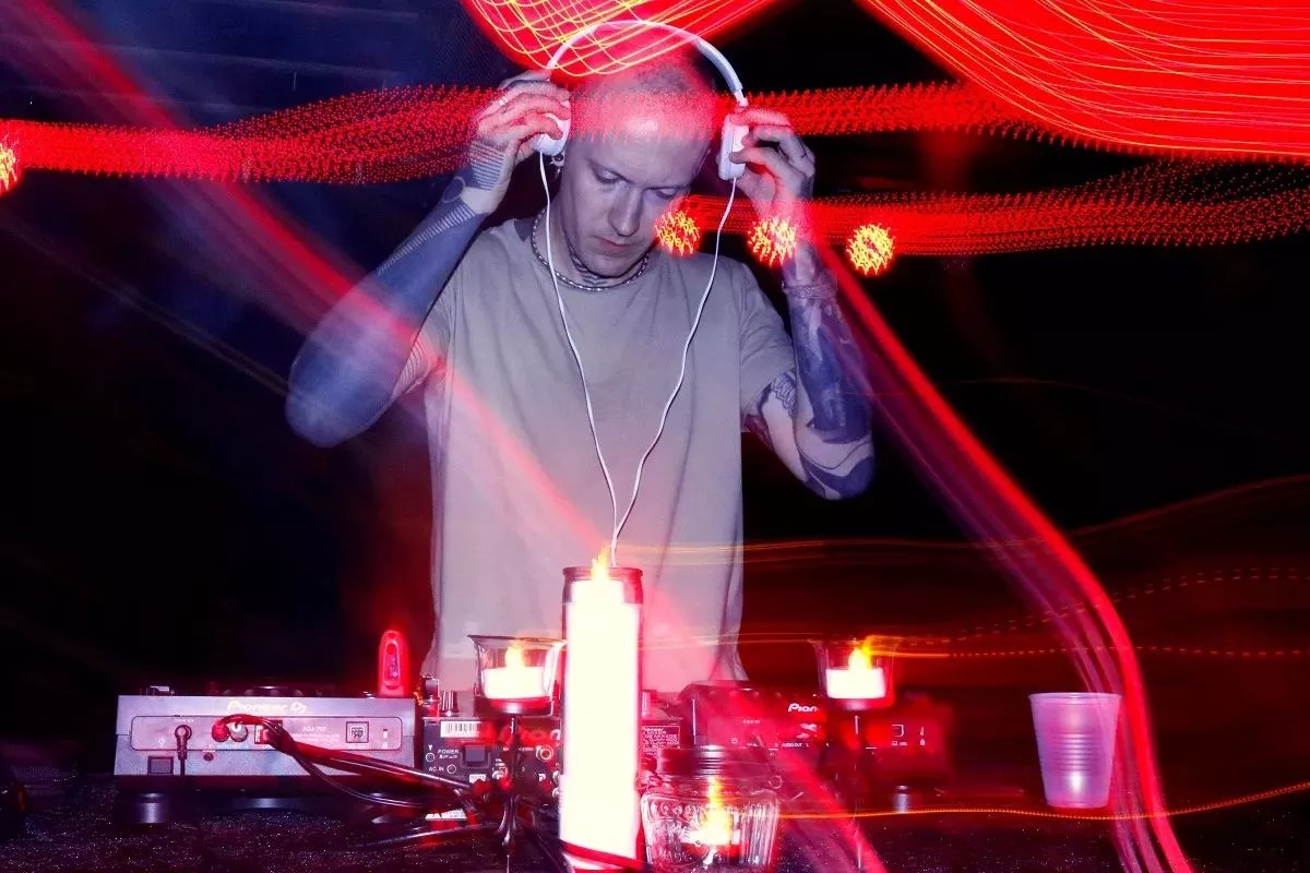 DJ Tristan on the decks during the Grave Wave dance night at The Rebel Lounge in 2018.