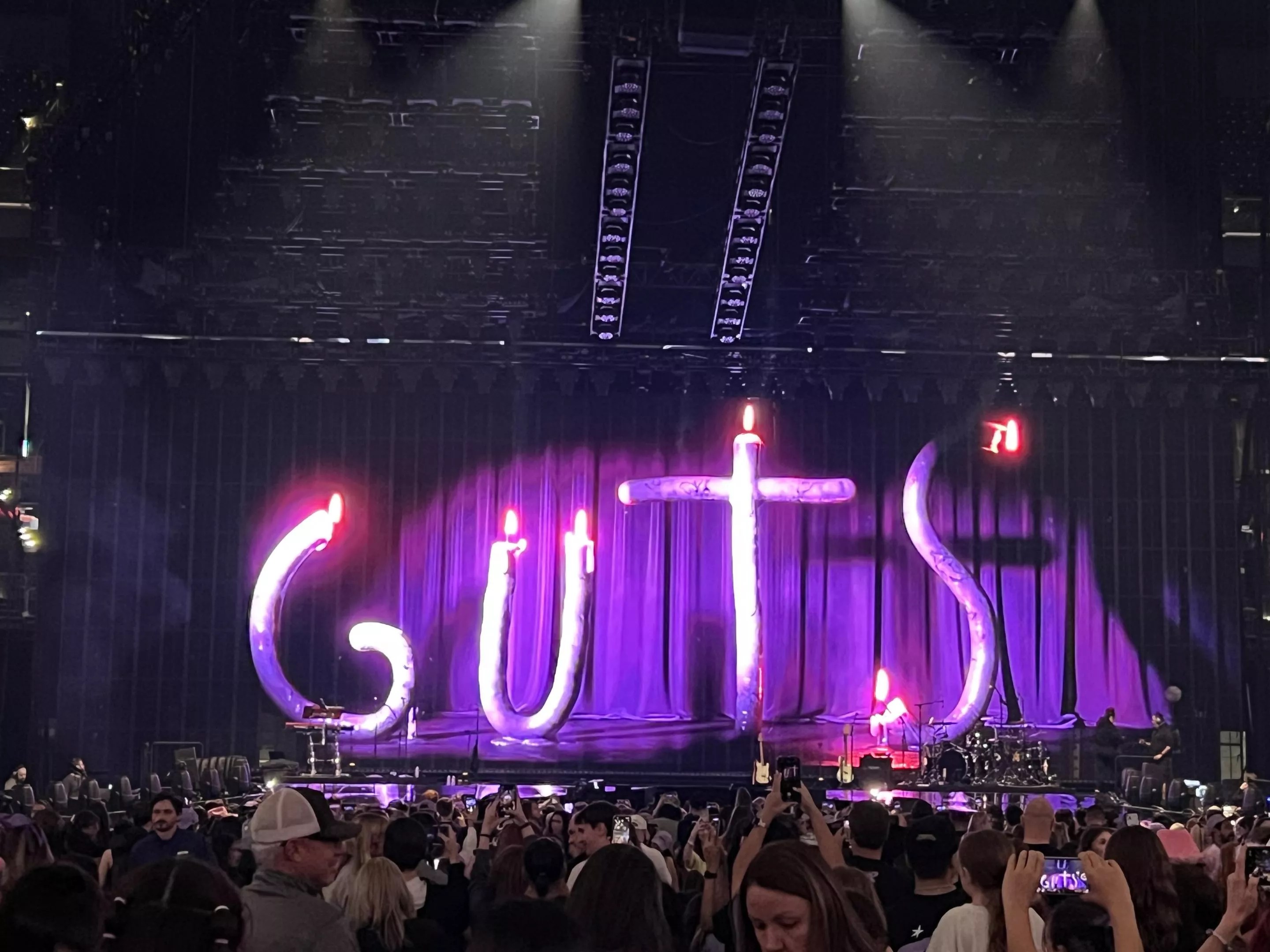Before the concert began, the word “Guts” spelled out in melting candles acted as a countdown to the show.