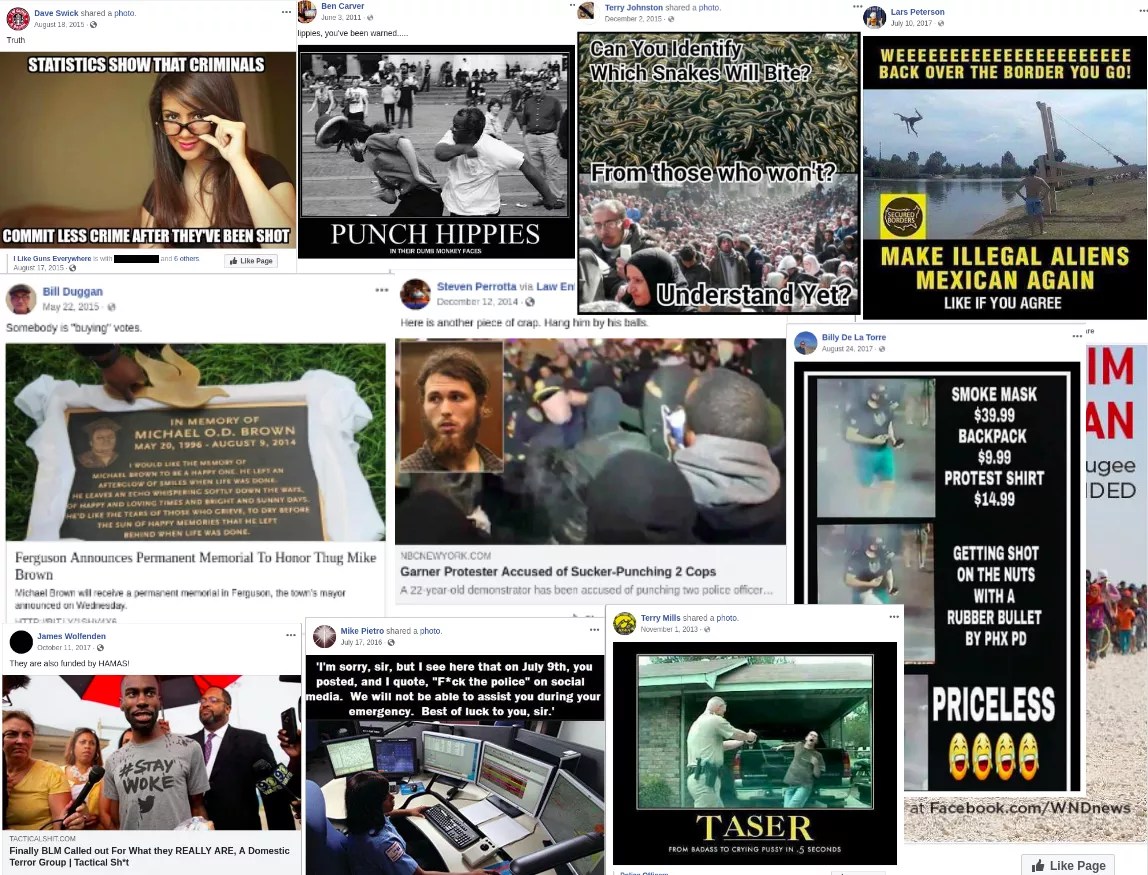 As Phoenix police chief Jeri Williams continues to grapple with the fallout from officers’ posts, many of which called for violence against protesters, referred to black people as “thugs,” and Muslims as rapists, a Phoenix New Times review of the 97 Phoenix cops whose posts were included in the database found that many of the officers who made offensive posts on Facebook have also been named in lawsuits alleging death or serious injury at the hands of the officers.