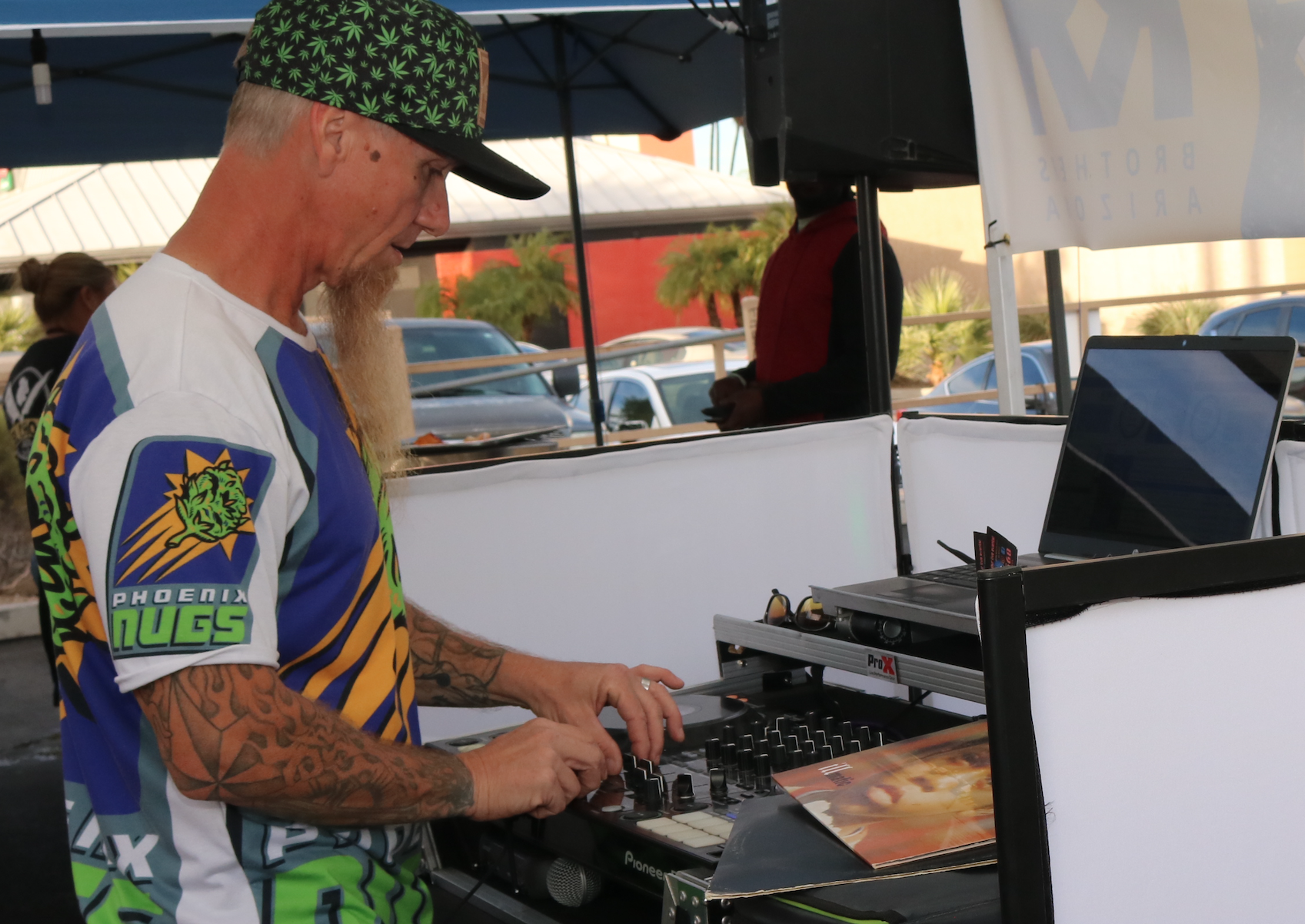 DJ KP is a Mesa-based artist who can be found at Mint dispensaries spinning hip-hop on the newer Serato DJ software platform. Still, KP, an acronym for “keep positive,” is an old-school DJ who used to spin vinyl records at clubs and events. “Now, my kids are learning on my old Numark turntables,” he says. “I still love old vinyl, but I go with an all-digital setup for events like this because it’s easier to lug my equipment around.”